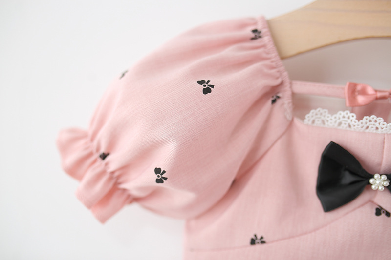 特点:满身蝴蝶结印花 泡泡袖