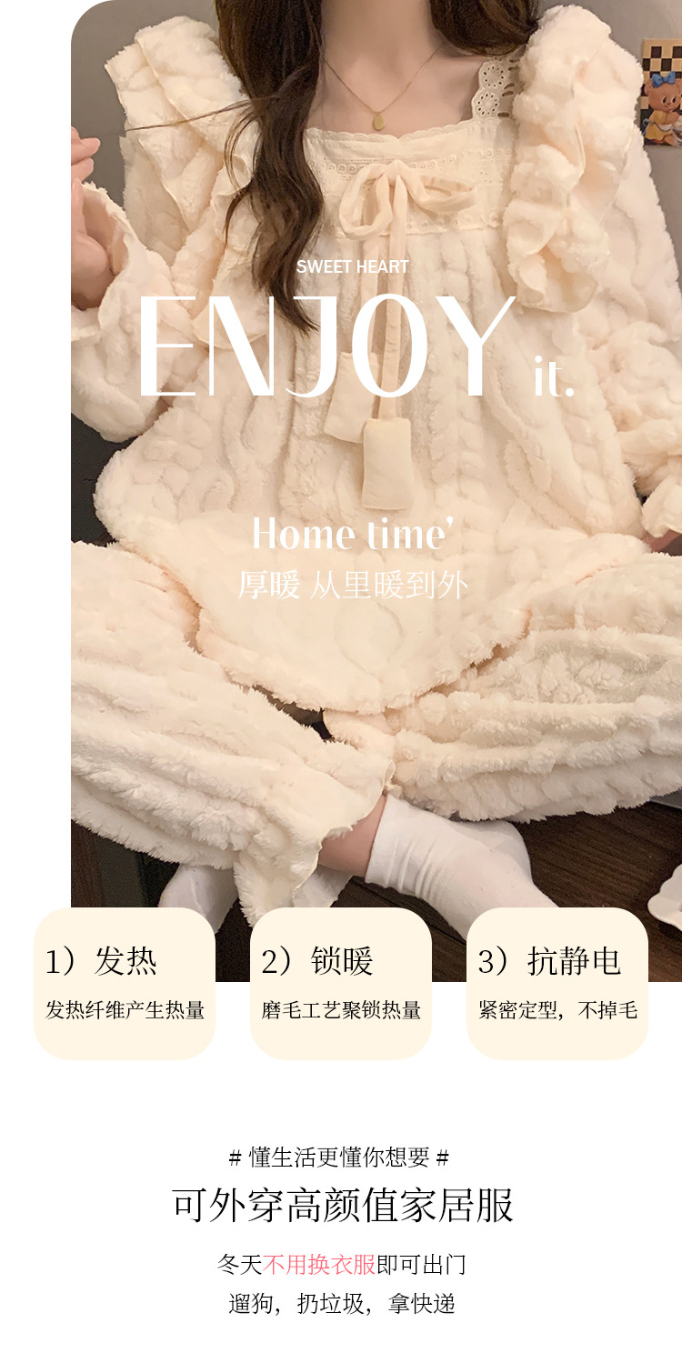 여성을위한 플란넬 잠옷 겨울 두꺼운 2025 새로운 산호 벨벳 가을, 겨울 스퀘어 칼라 달콤한 홈웨어 세트스토어 가기