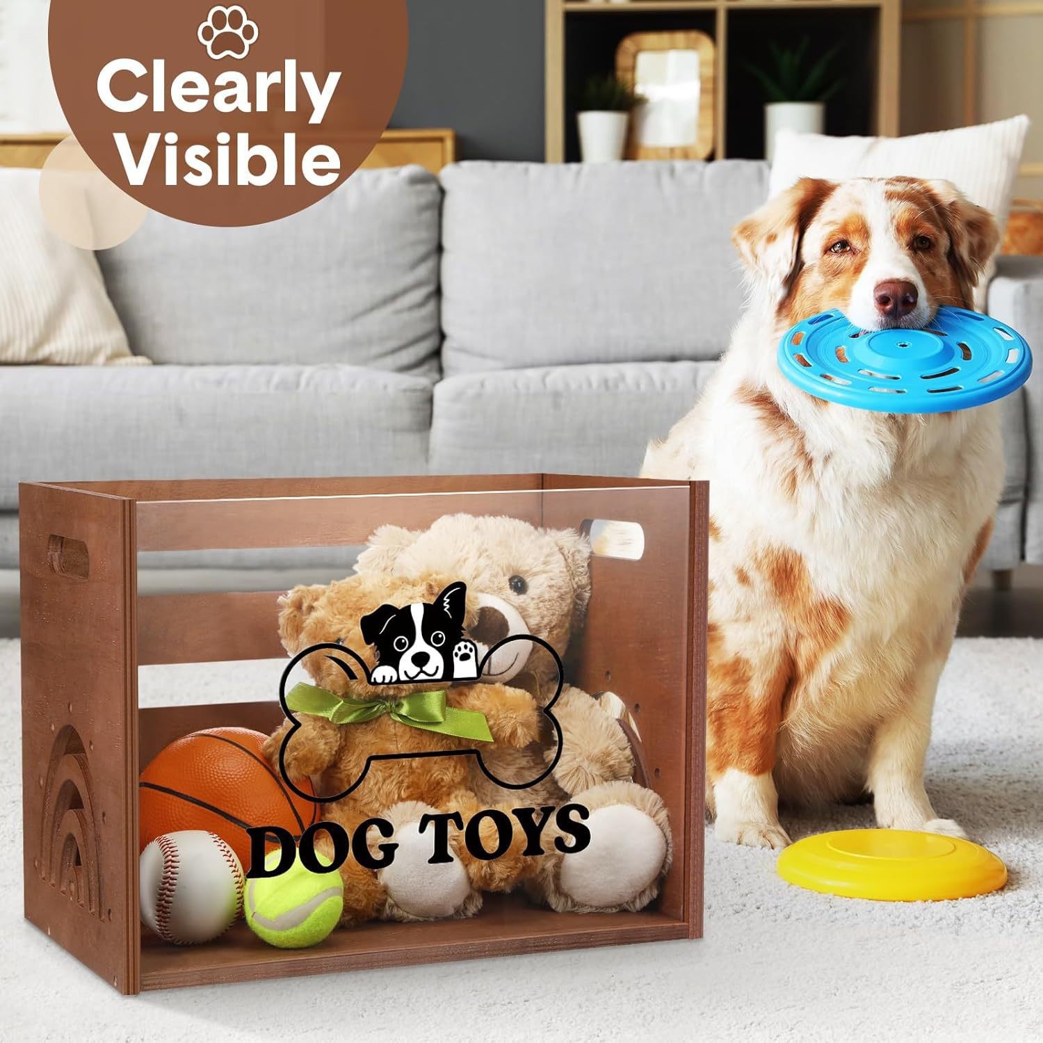 나무 장난감 보관 상자 투명 애완 동물 장난감 보관 상자 나무 애완 동물 간식 장난감 보관 상자