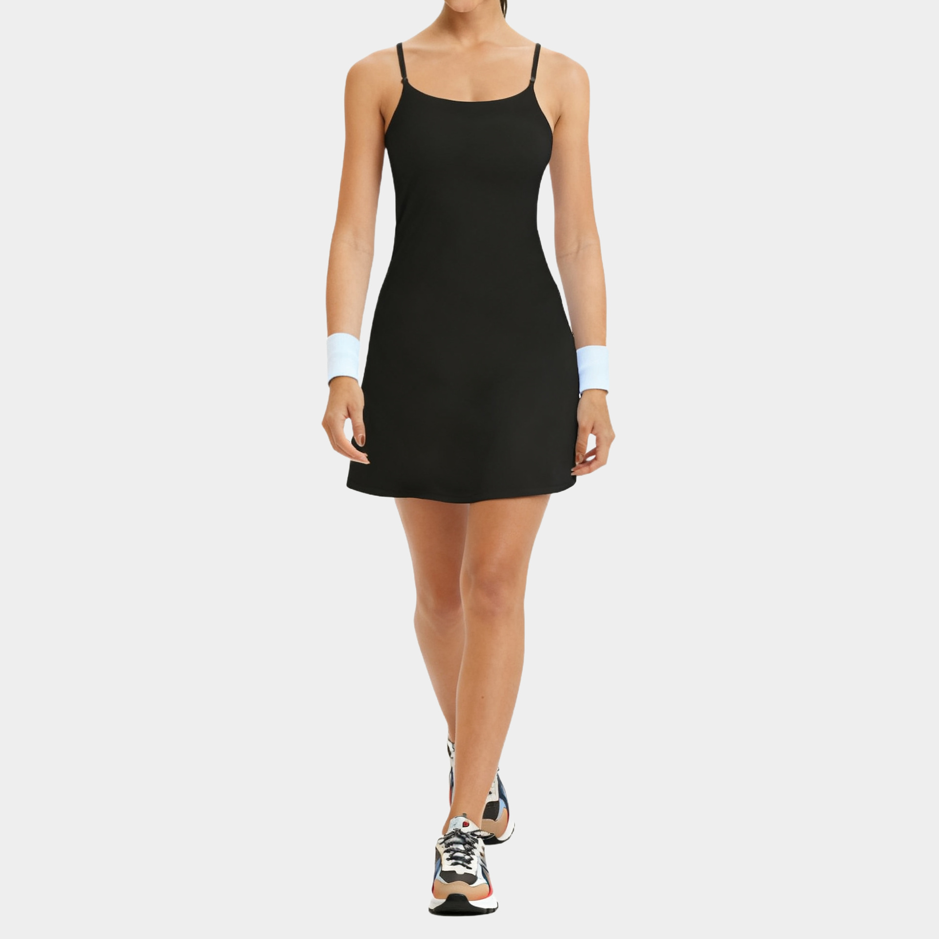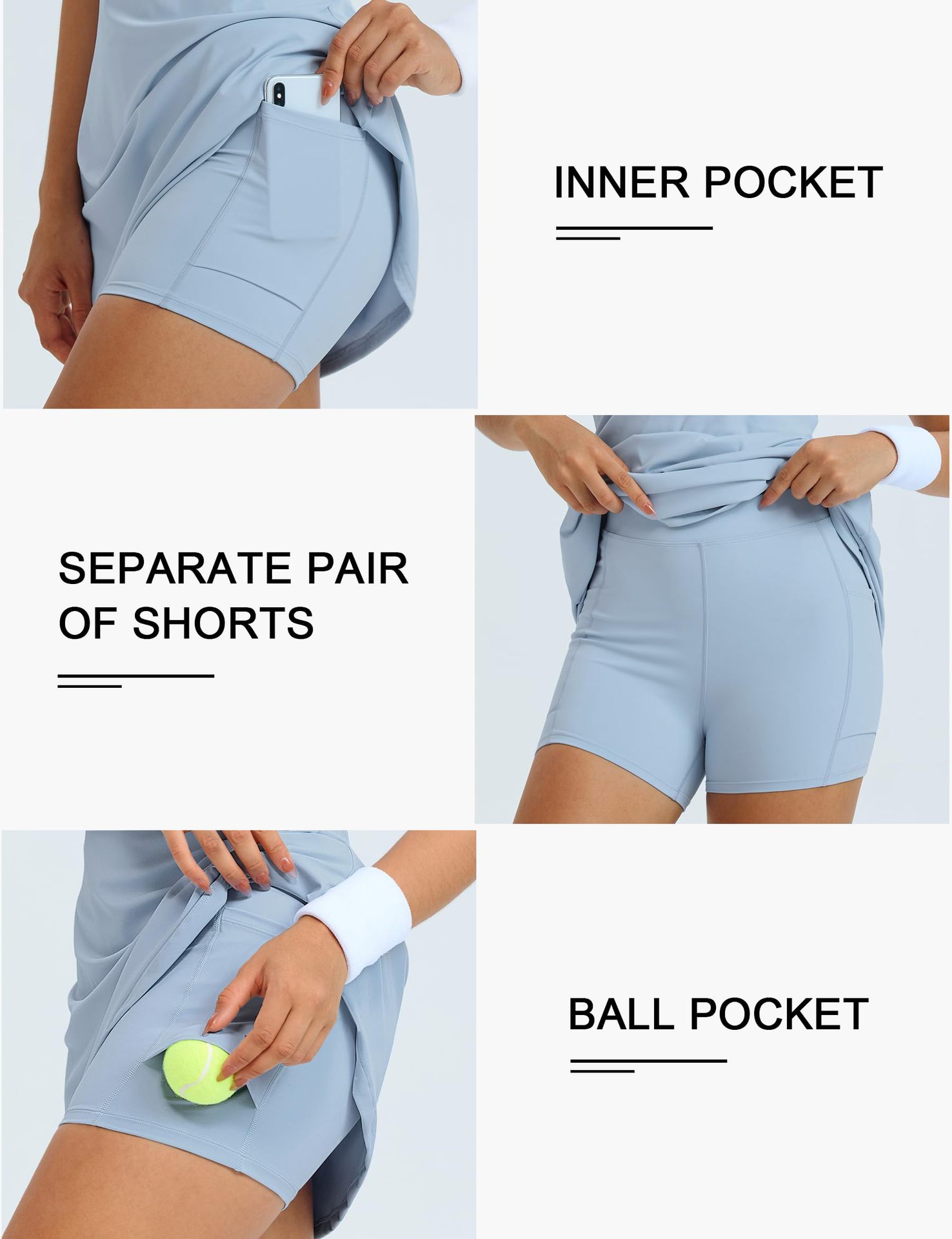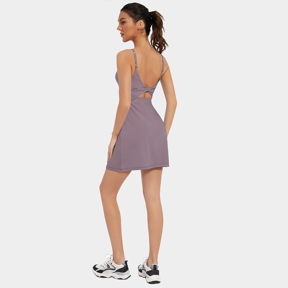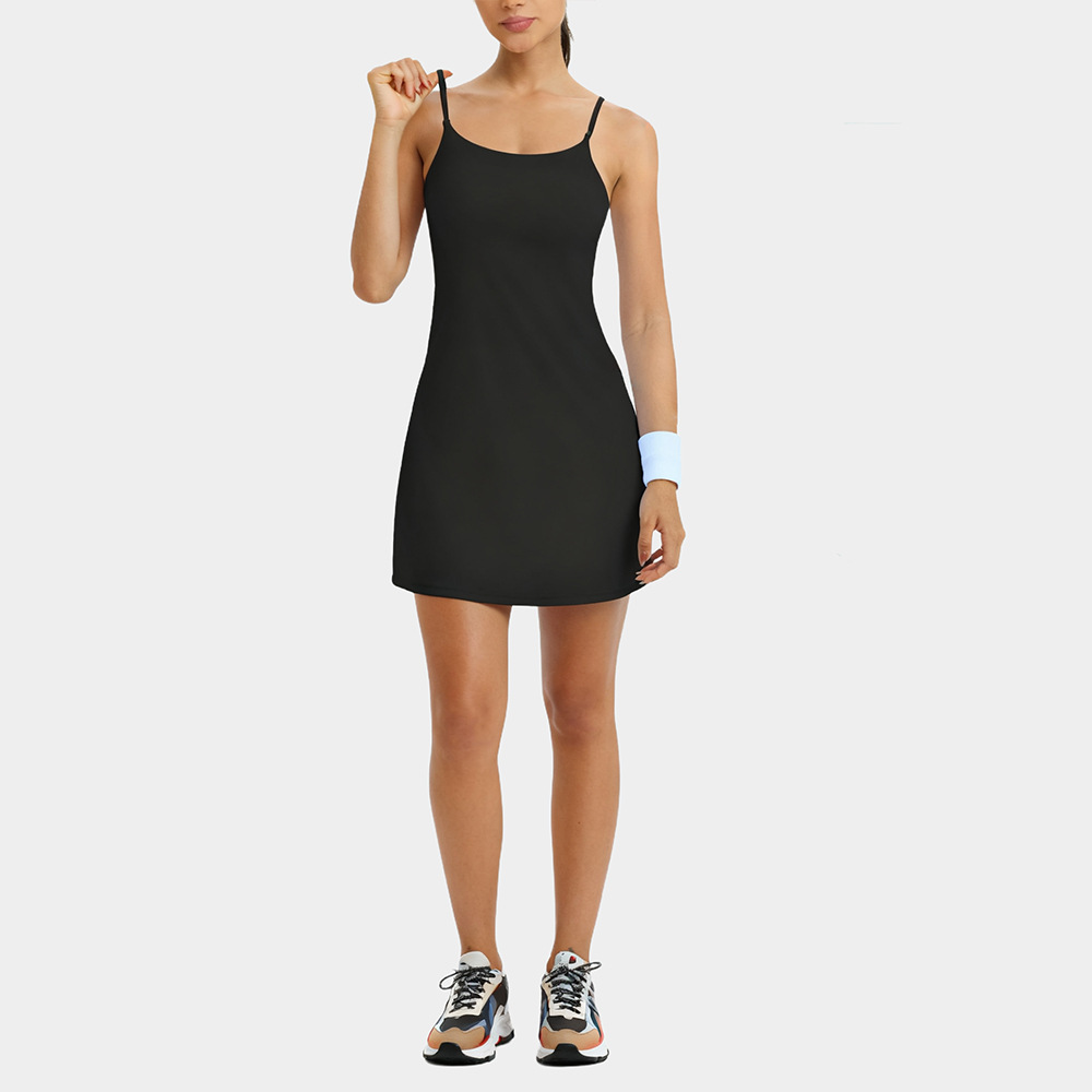 여성용 멜빵 원피스 테니스복 세트, 속건 통기성 스포츠 스커트, 아름다운 등라인 A라인 골프복 1306스토어 가기