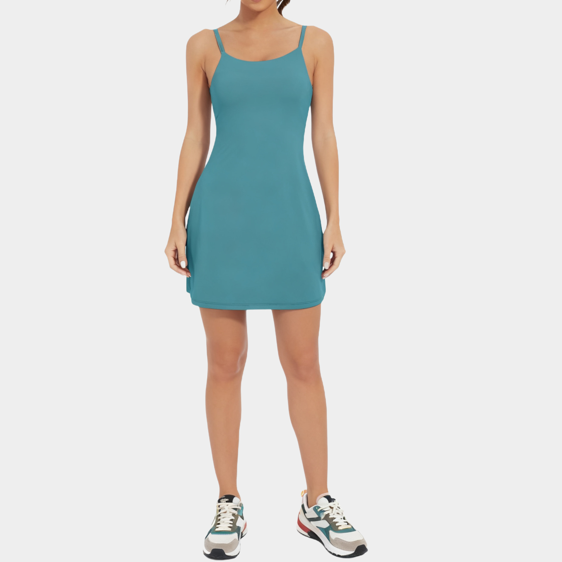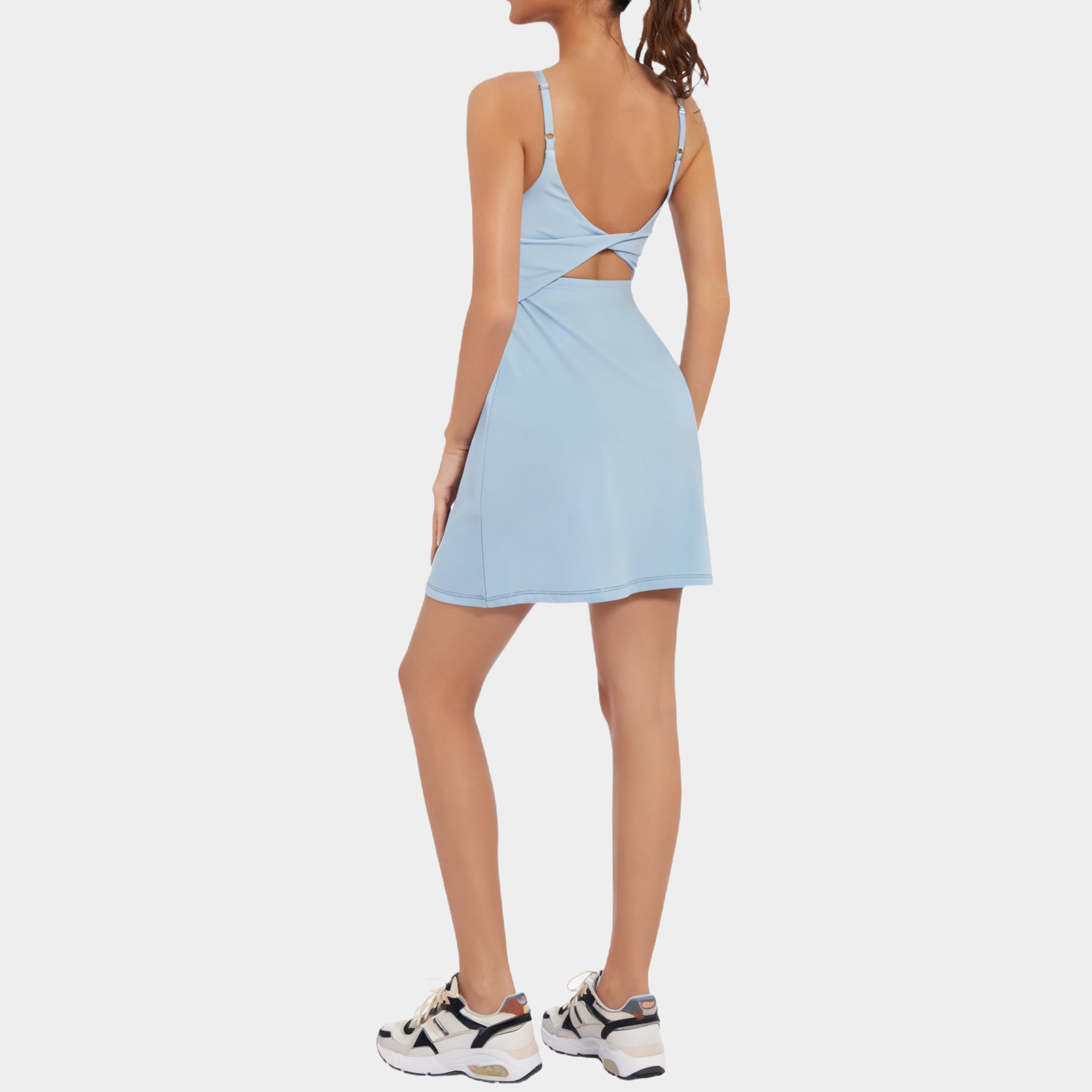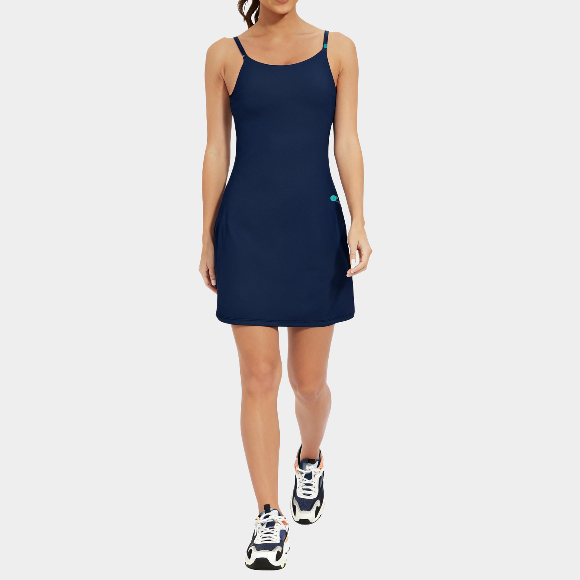 여성용 멜빵 원피스 테니스복 세트, 속건 통기성 스포츠 스커트, 아름다운 등라인 A라인 골프복 1306스토어 가기