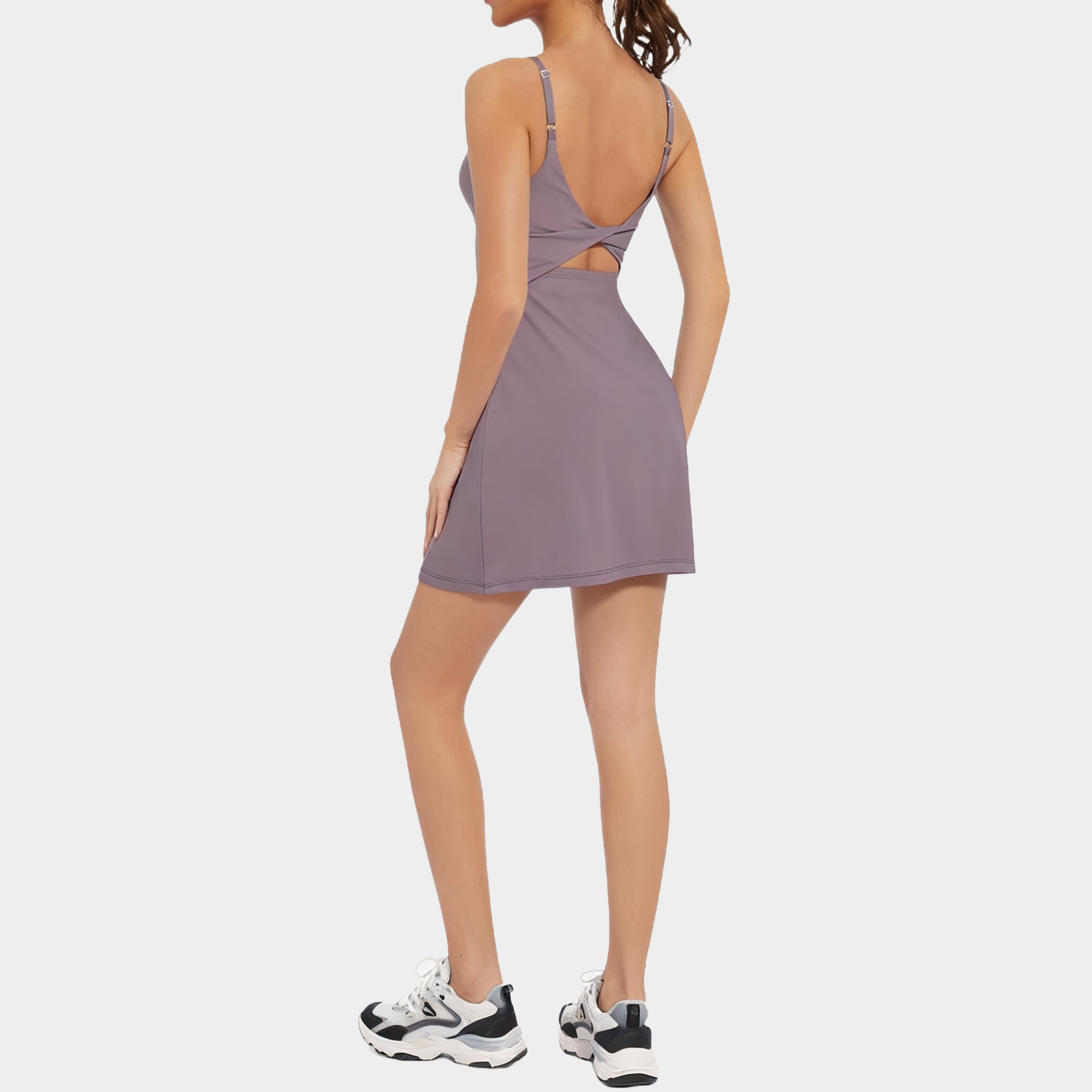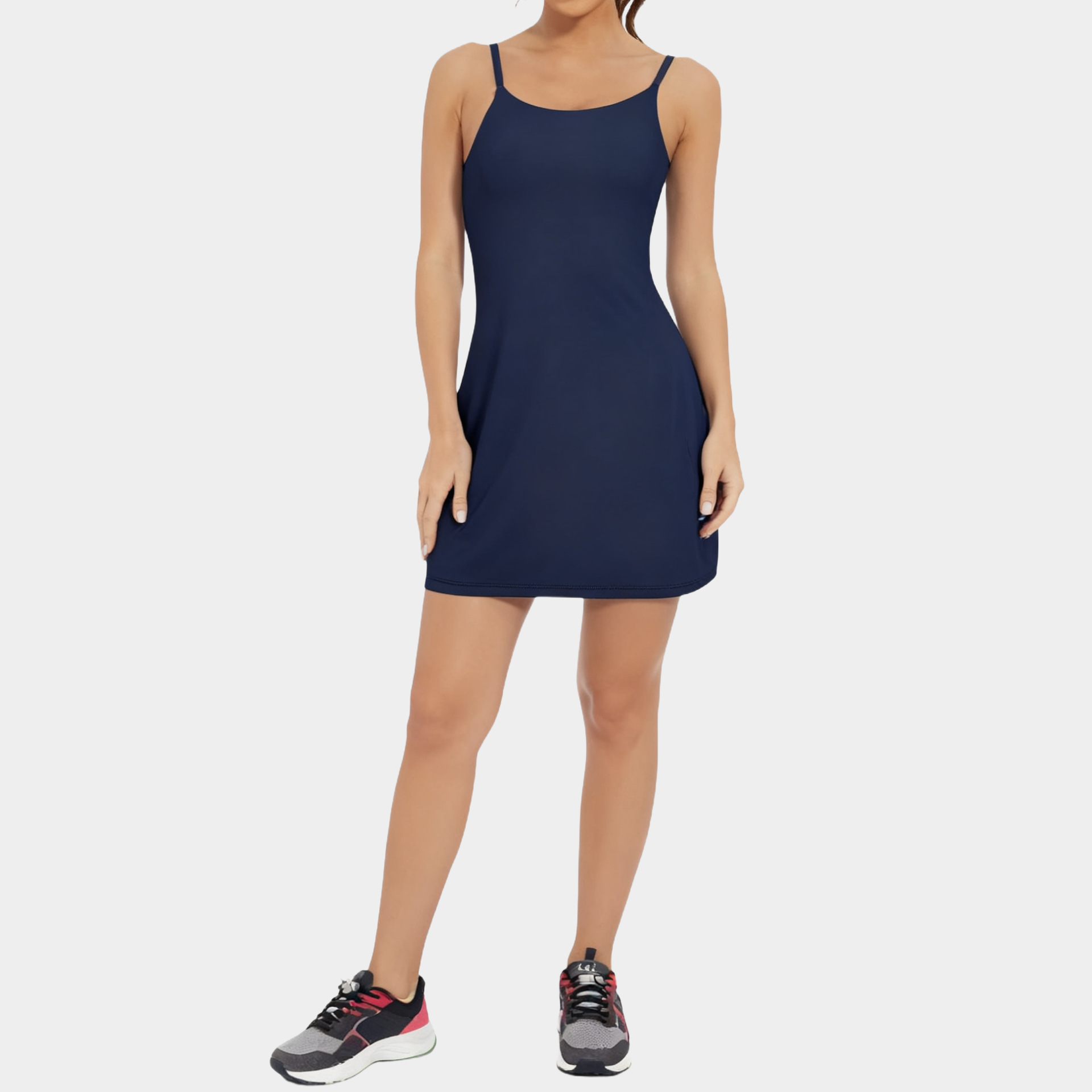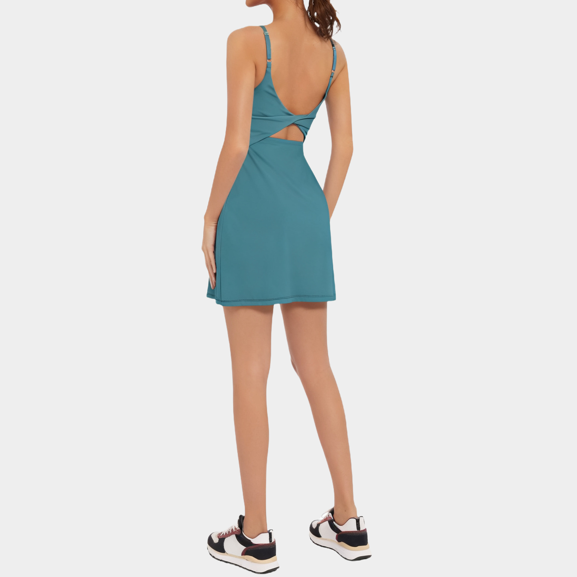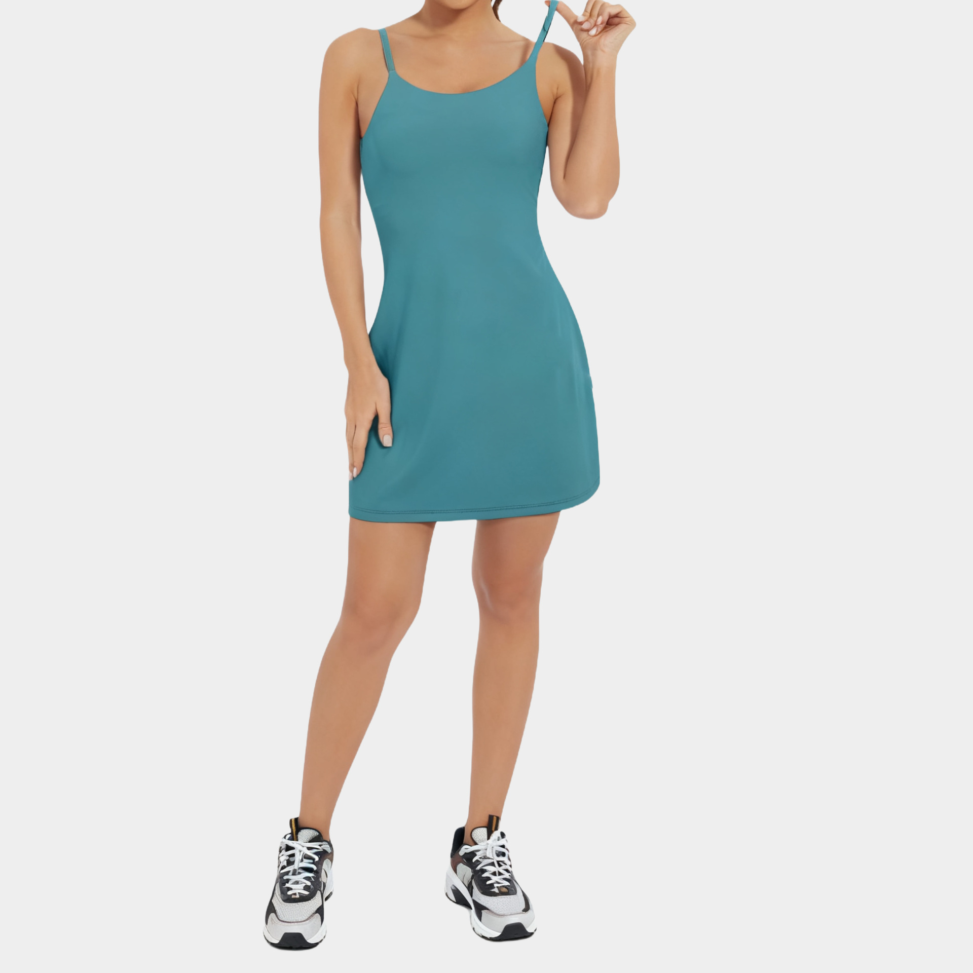 여성용 멜빵 원피스 테니스복 세트, 속건 통기성 스포츠 스커트, 아름다운 등라인 A라인 골프복 1306스토어 가기