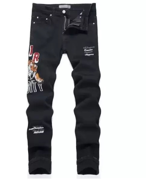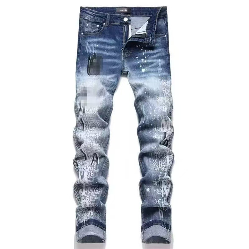 트렌디한 캐주얼 패치 슬림핏 트렌디 브랜드 맞춤형 바지 트렌디한 새로운 스타일의 남성용 찢어진 패치 자수 청바지