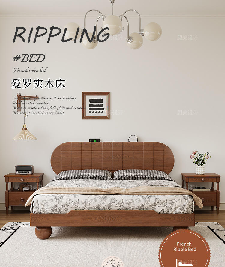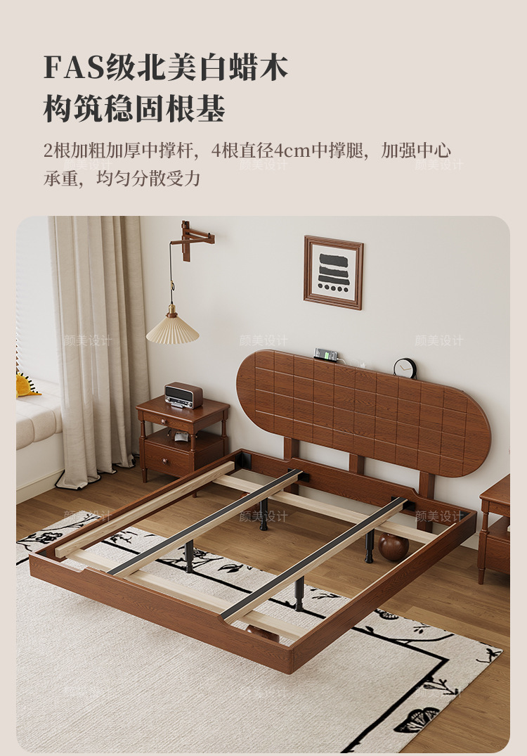 중세 스타일 애쉬 원목 침대 방습 뼈대 침대 프레임 1.8m 더블 침대 작은 아파트 공간 절약형 침대 낮은 침대스토어 가기