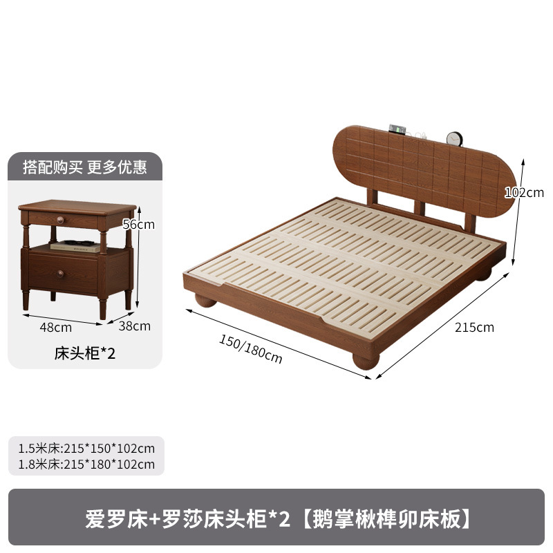• Aero 침대 + Rosa 침대 옆 테이블*2 [Liriodendron tenetum 장붓구멍 및 장부 침대 보드] 두 가지 색상 사용 가능 비고