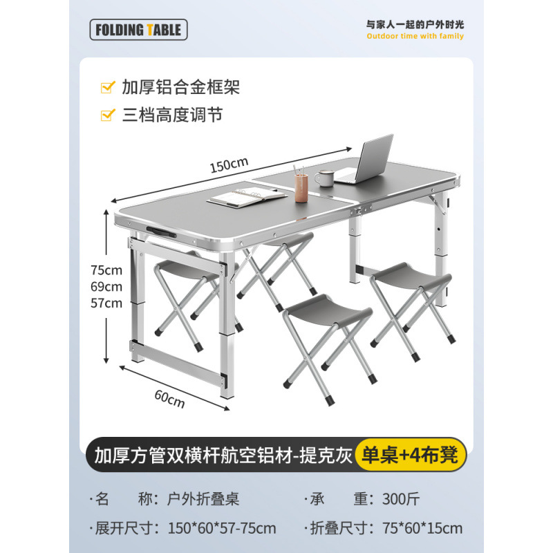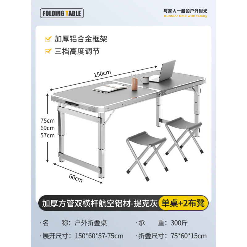 • [두꺼운 사각형 튜브 이중 크로스바 항공 알루미늄] 150cm 회색 검정색 + 알루미늄 스툴 4개 설치 필요 없음