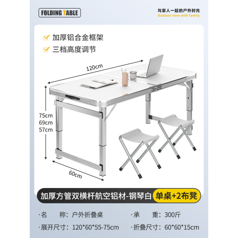 • [두꺼운 사각 튜브 이중 크로스바 항공 알루미늄] 120cm 피아노 화이트 + 알루미늄 스툴 2개 설치 불필요