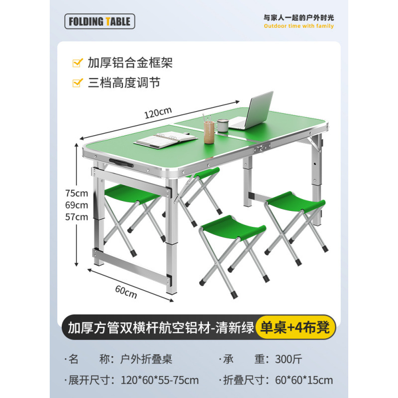 • [두꺼운 사각 튜브 이중 크로스바 항공 알루미늄] 120cm 신록 + 천 스툴 4개 설치 불필요