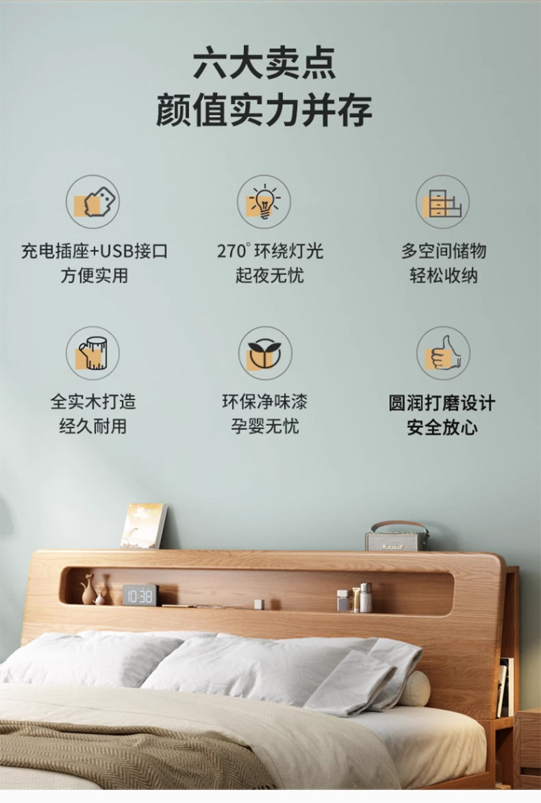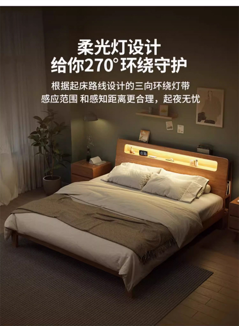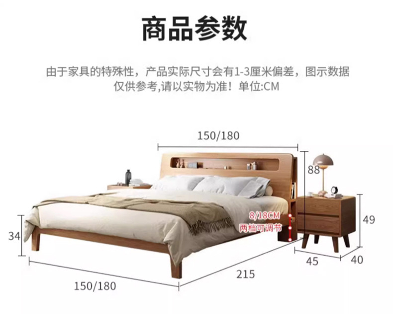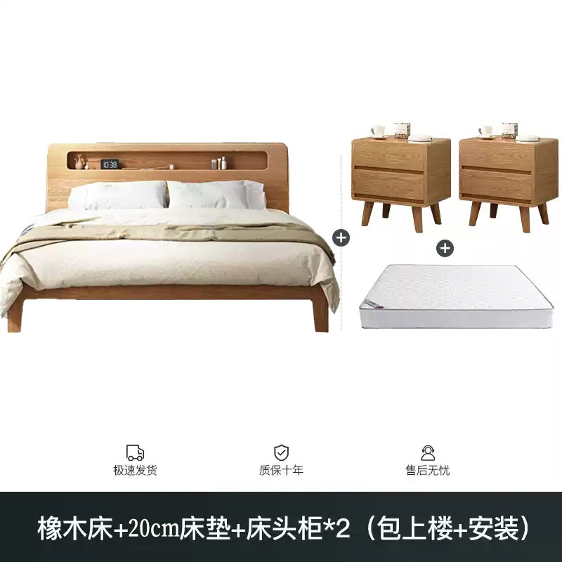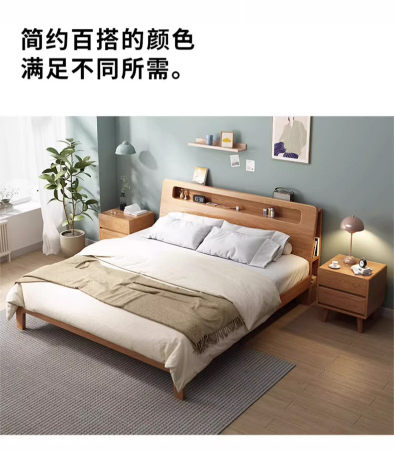 원목 침대 1.5m 더블 침대 홈 모던 심플 1.8m 임대 주택 경제적 1.2m 싱글 침실