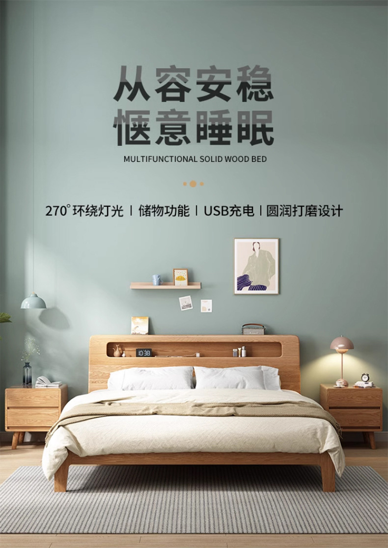 • 오크 침대 + 20CM 브랜드 브라운 매트 + 캐비닛 1개