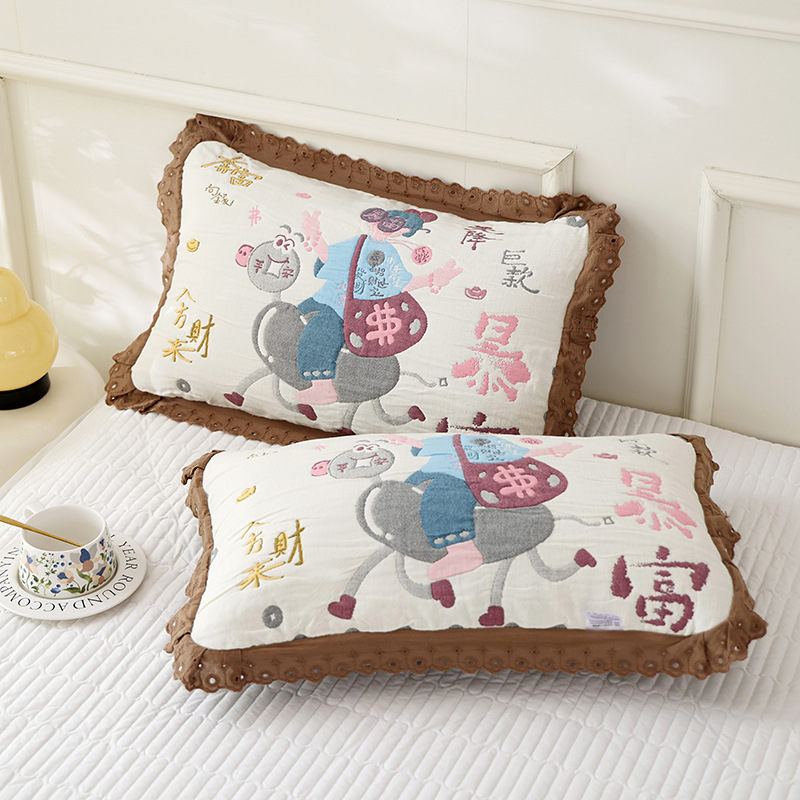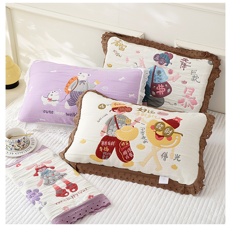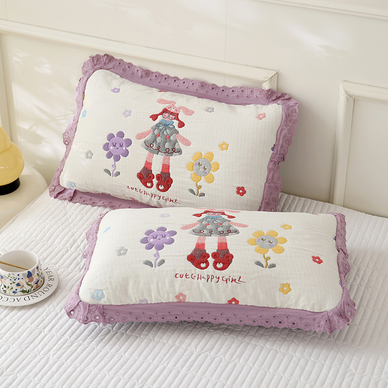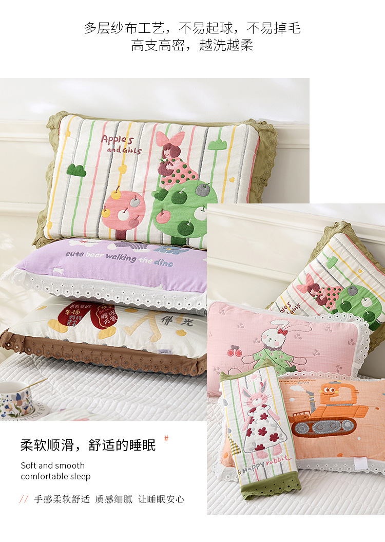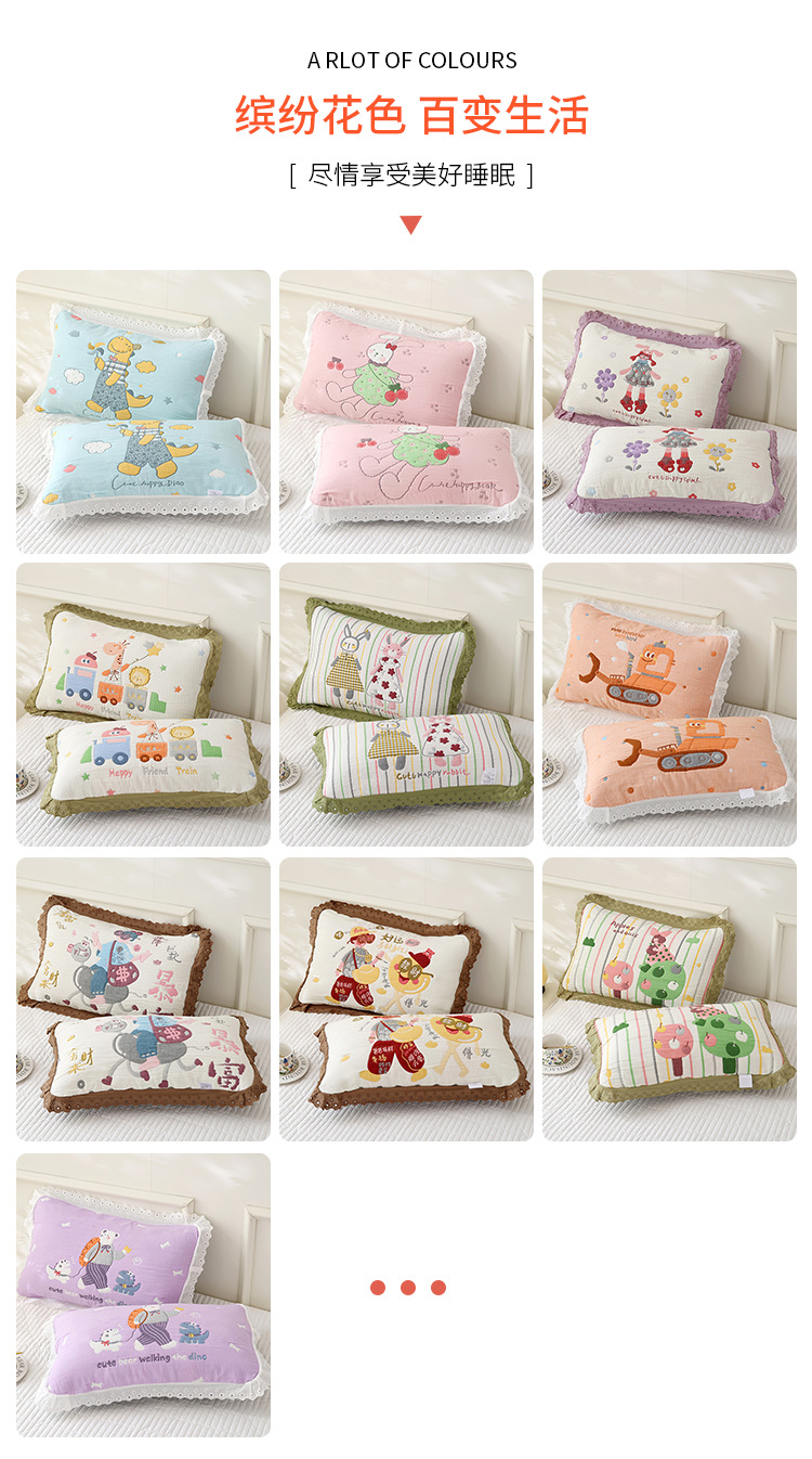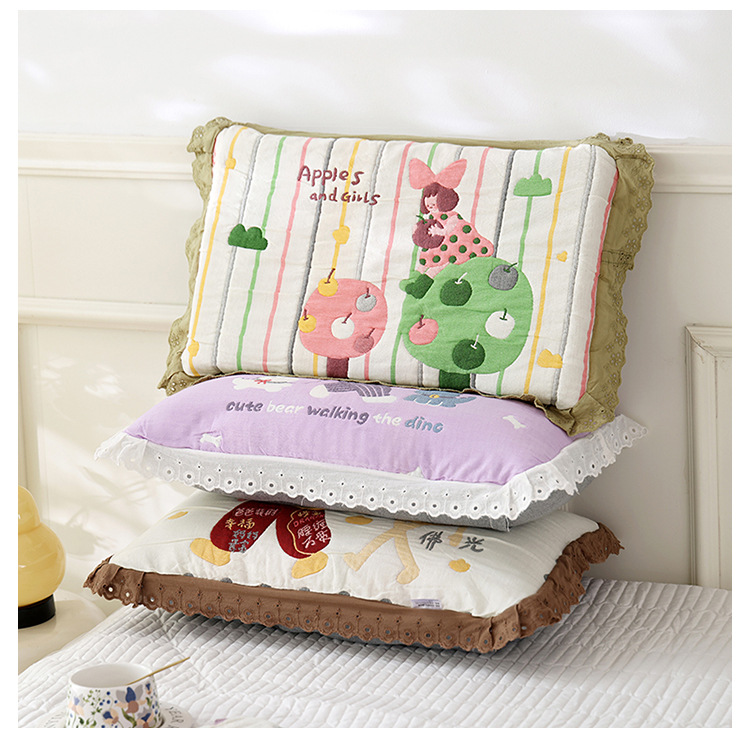도매 어린이 베개 커버 부드럽고 통기성 가정용 면 베개 코어 라이너 커버 가정용 일일 사용 거즈 레이스 베개 커버스토어 가기