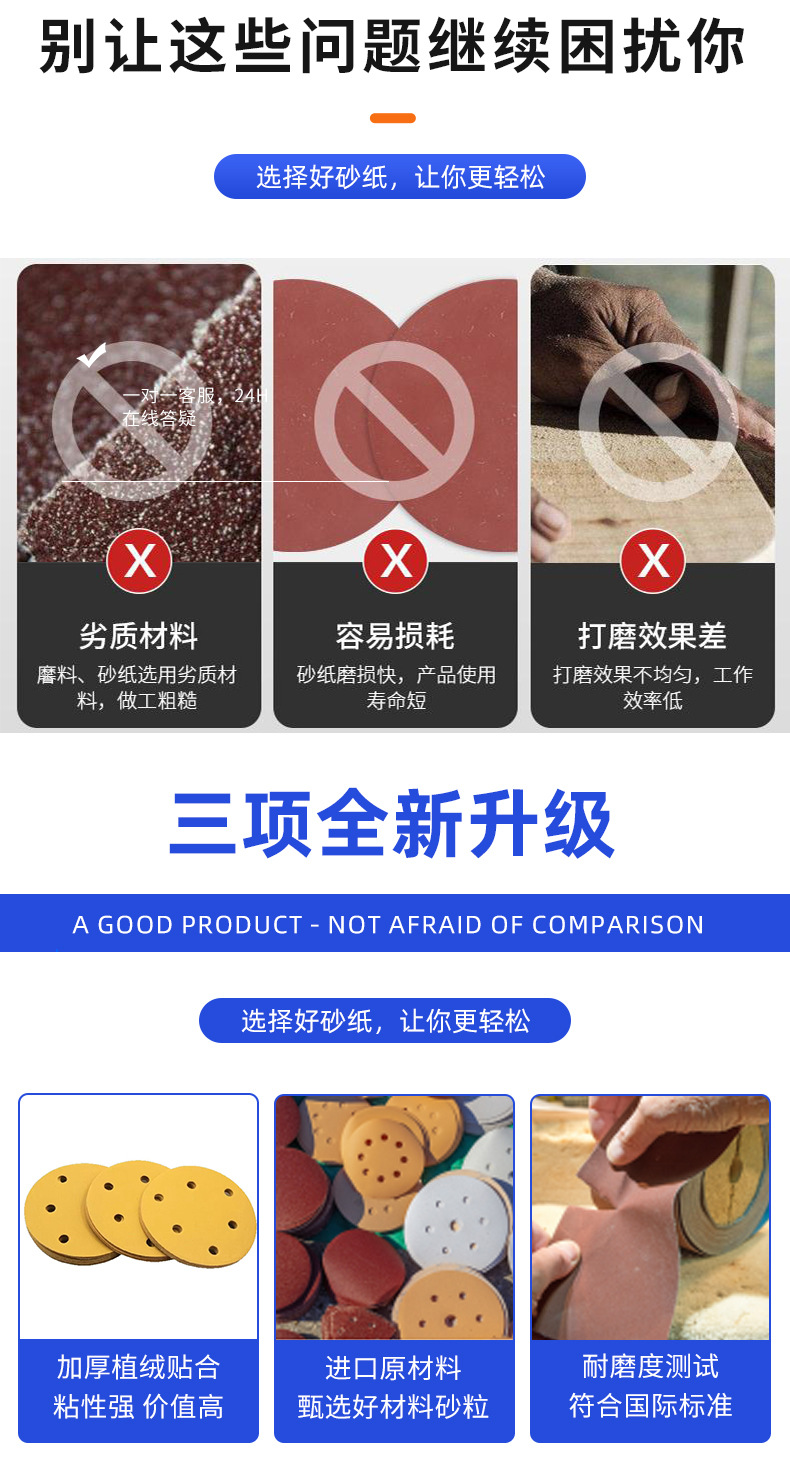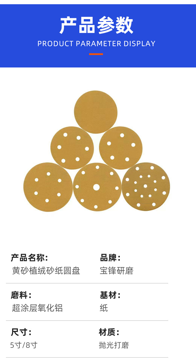 제조업체는 노란색 모래 플로킹 원형 디스크 사포, 막힘 방지 사포 시트, 연마 및 연마 브러시 시트, 벨벳 시트를 공급합니다.스토어 가기
