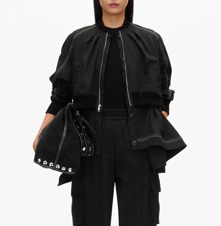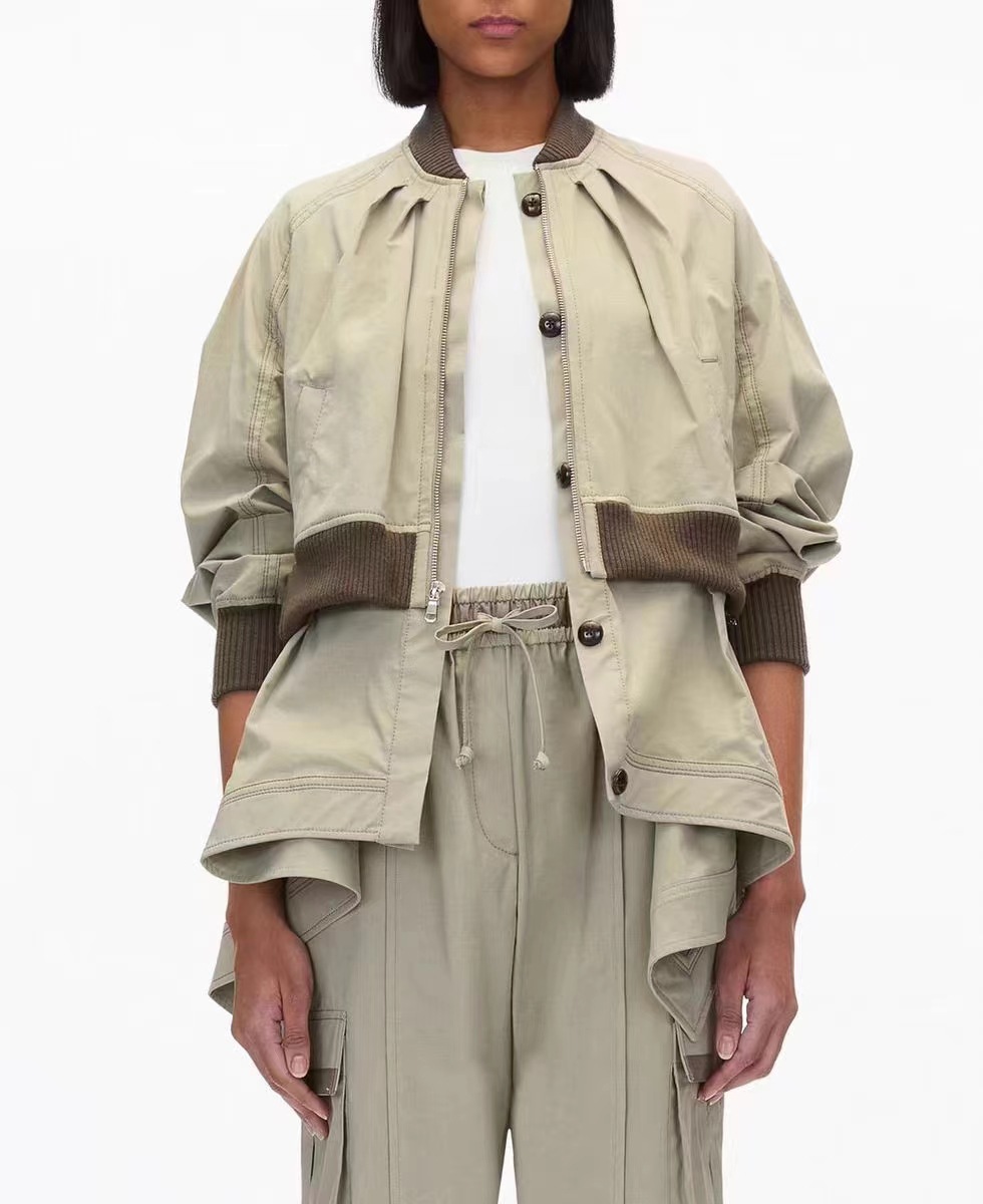 여성을위한 미국 복고풍 야구 재킷 2025 불규칙한 스플 라이스 재킷 여성을위한 가짜 투피스 느슨한 긴팔 재킷