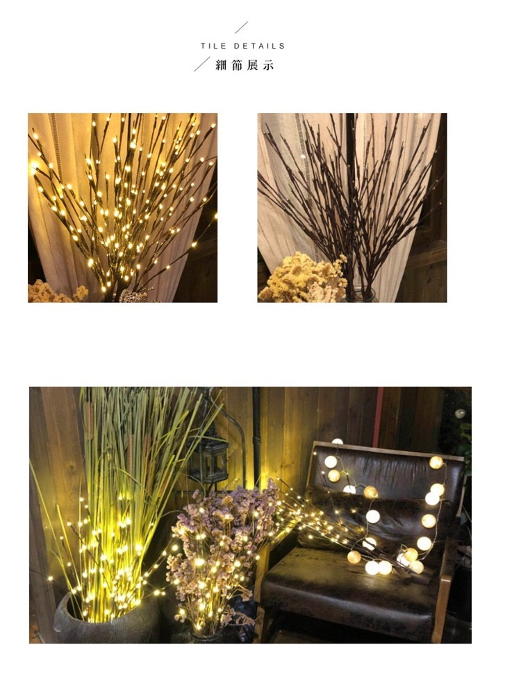 • (따뜻한 색상) 자작나무 꽃가지 - 배터리 버전 (건전지 2개, AA 5개 제외)