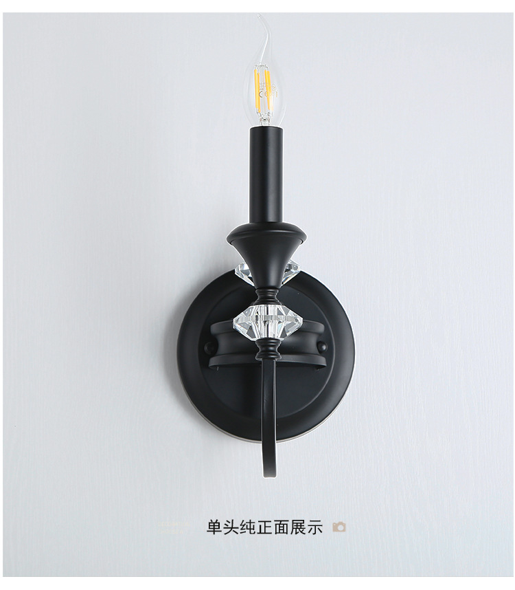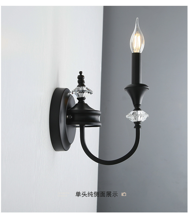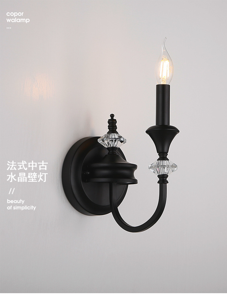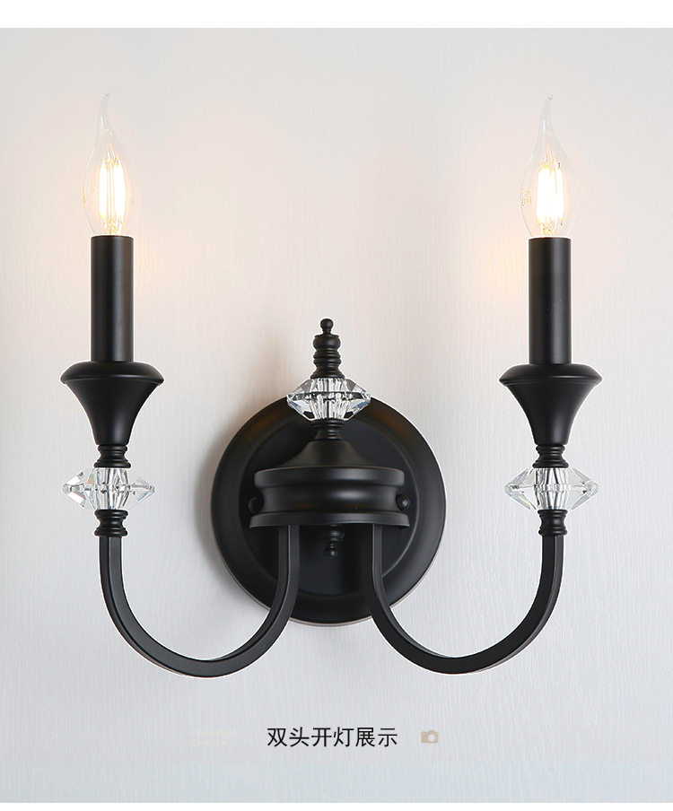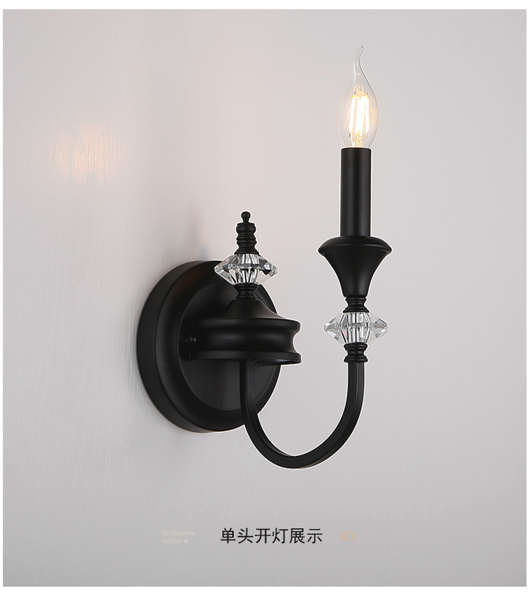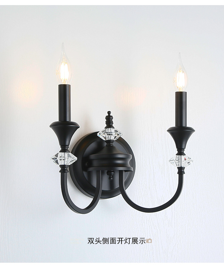 프랑스 미국 벽 램프 복고풍 간단한 검은 크리스탈 촛불 벽 램프 남양 스타일 침실 룸 철 램프