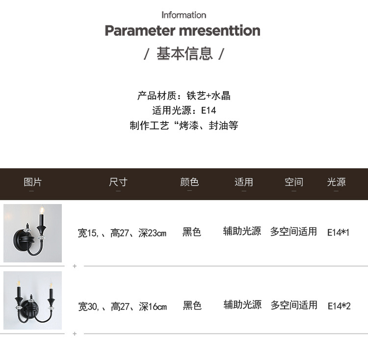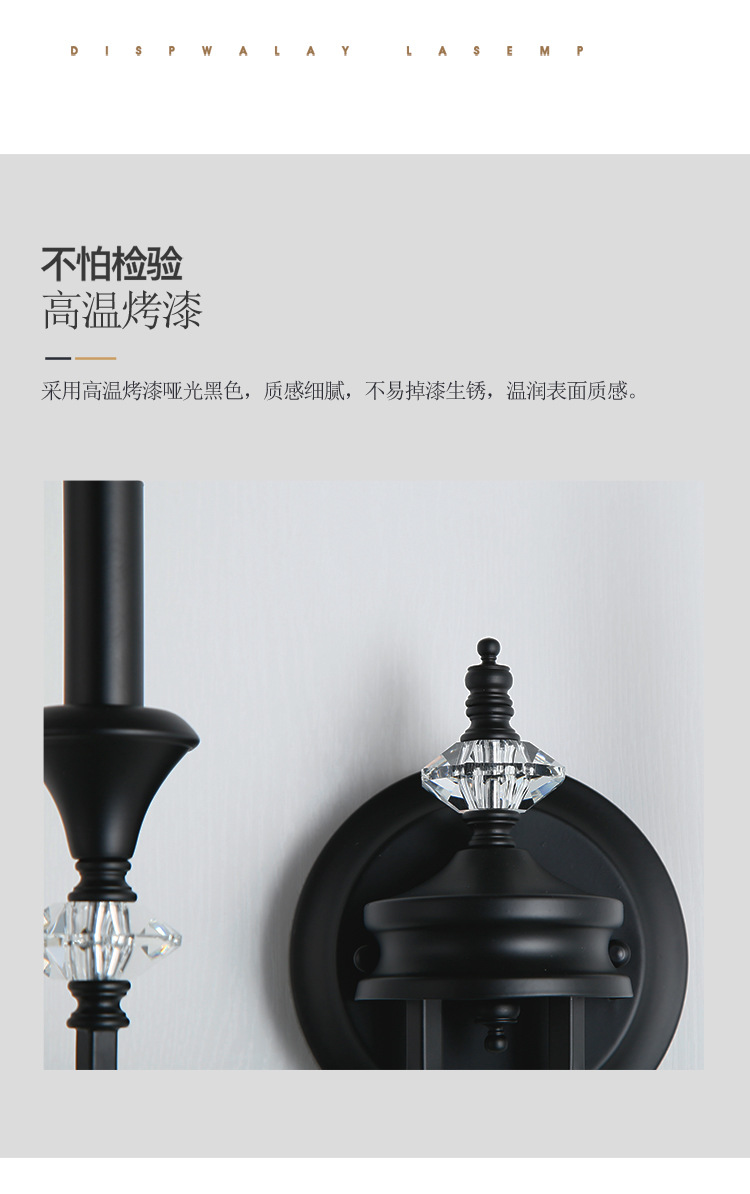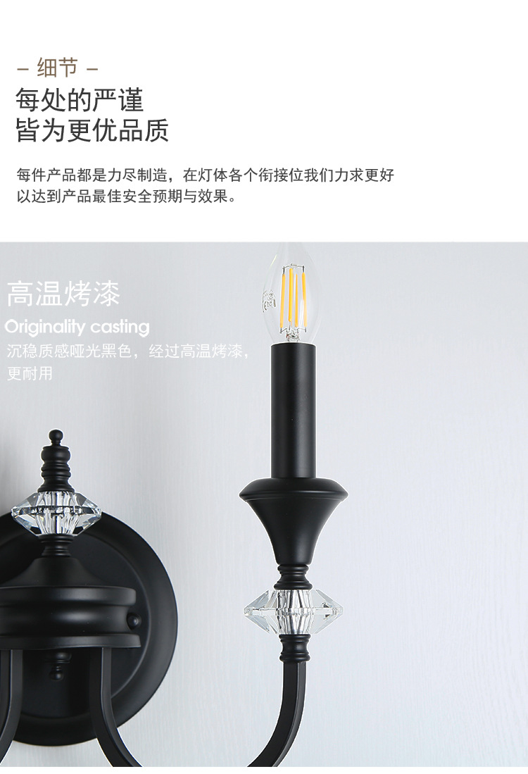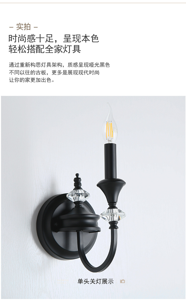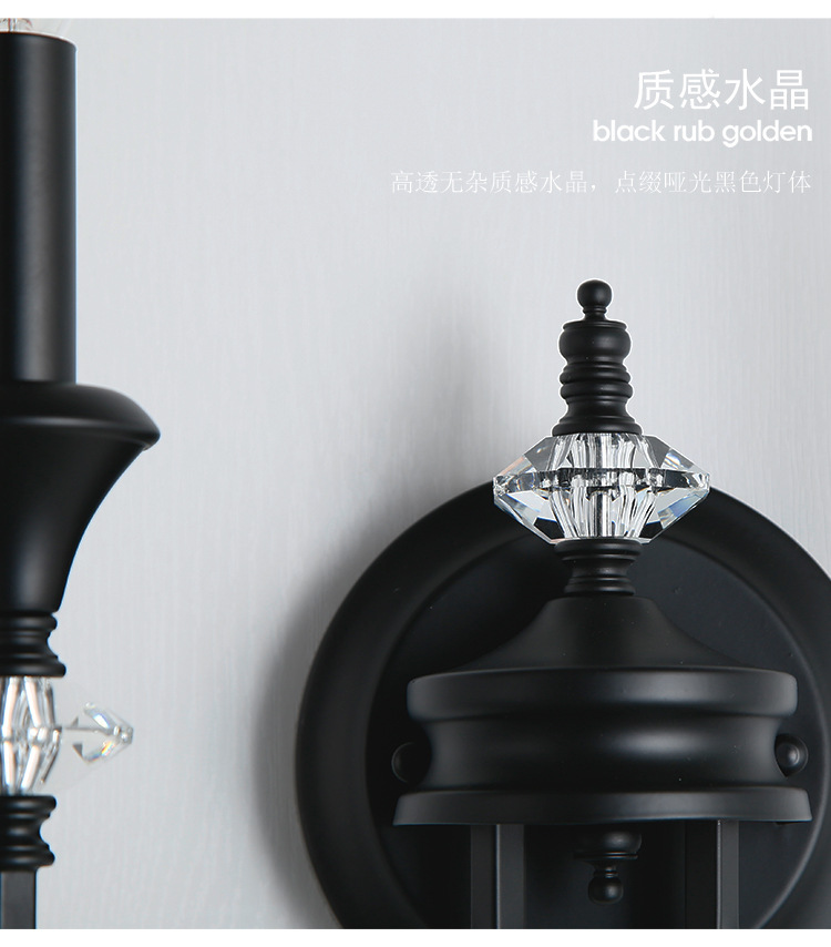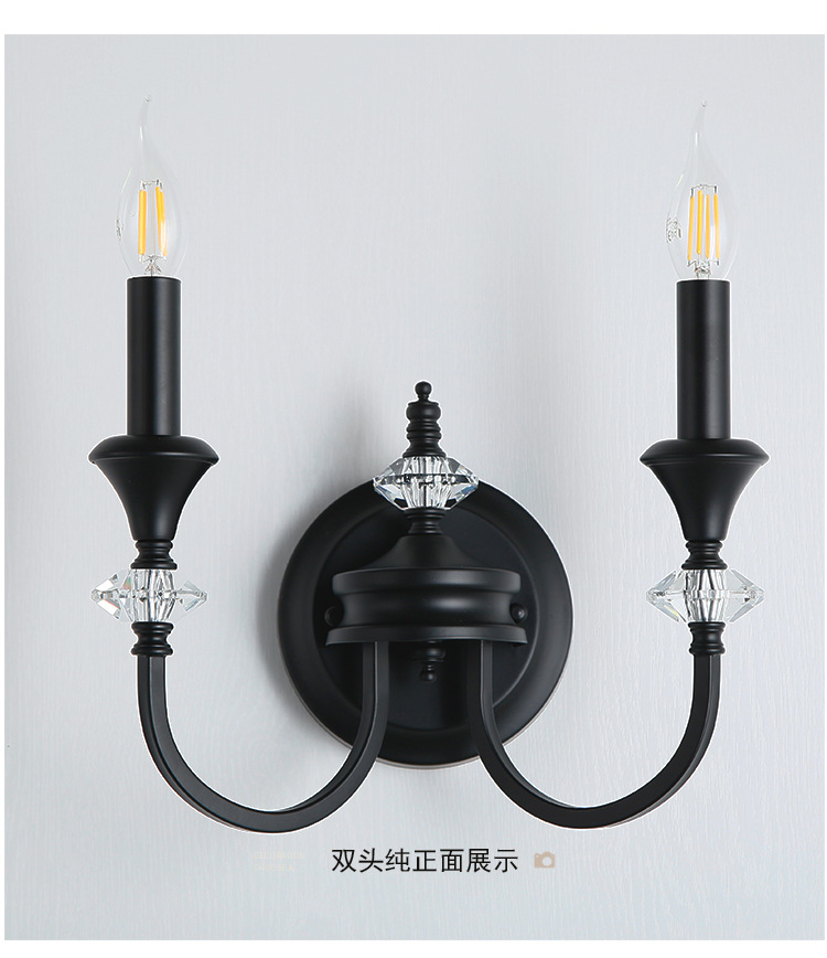 프랑스 미국 벽 램프 복고풍 간단한 검은 크리스탈 촛불 벽 램프 남양 스타일 침실 룸 철 램프