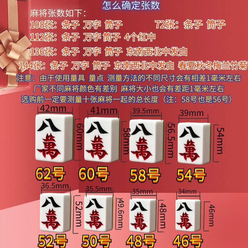 • 기계 마작 - 준 1급 62호, 108장, 특대 마작(색상 랜덤)