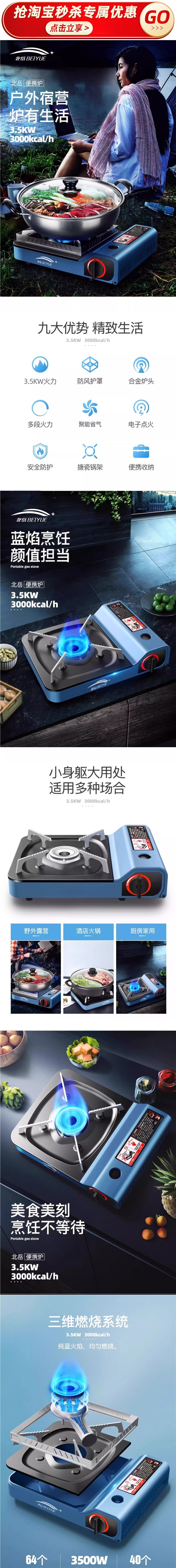 • 3500W 강력한 스토브 + 가스 4병 + 원형 베이킹 팬 + 집결 방풍 링