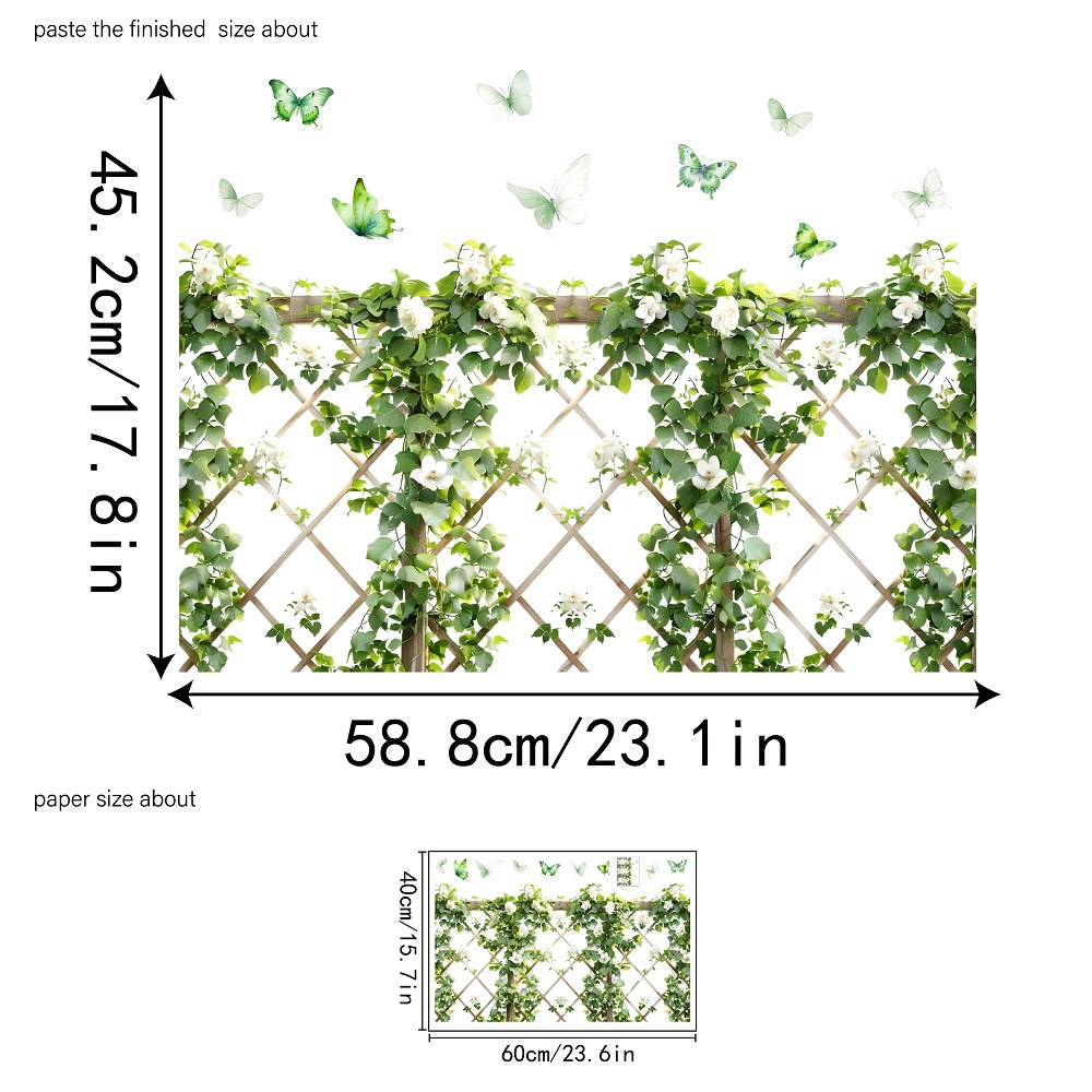 Yiyao DD4637 녹색 식물과 꽃 울타리 장식 벽 스티커 거실 벽 장식 자체 접착 스티커를위한 국경 간 전용 공급스토어 가기