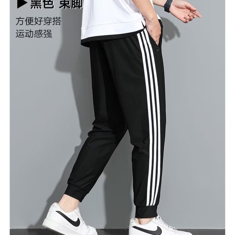 2025년 여름 남성용 스포츠 팬츠, 스트레이트 캐주얼 팬츠, 스트라이프 3선 교복 팬츠, 활용도 높은 얇은 팬츠스토어 가기