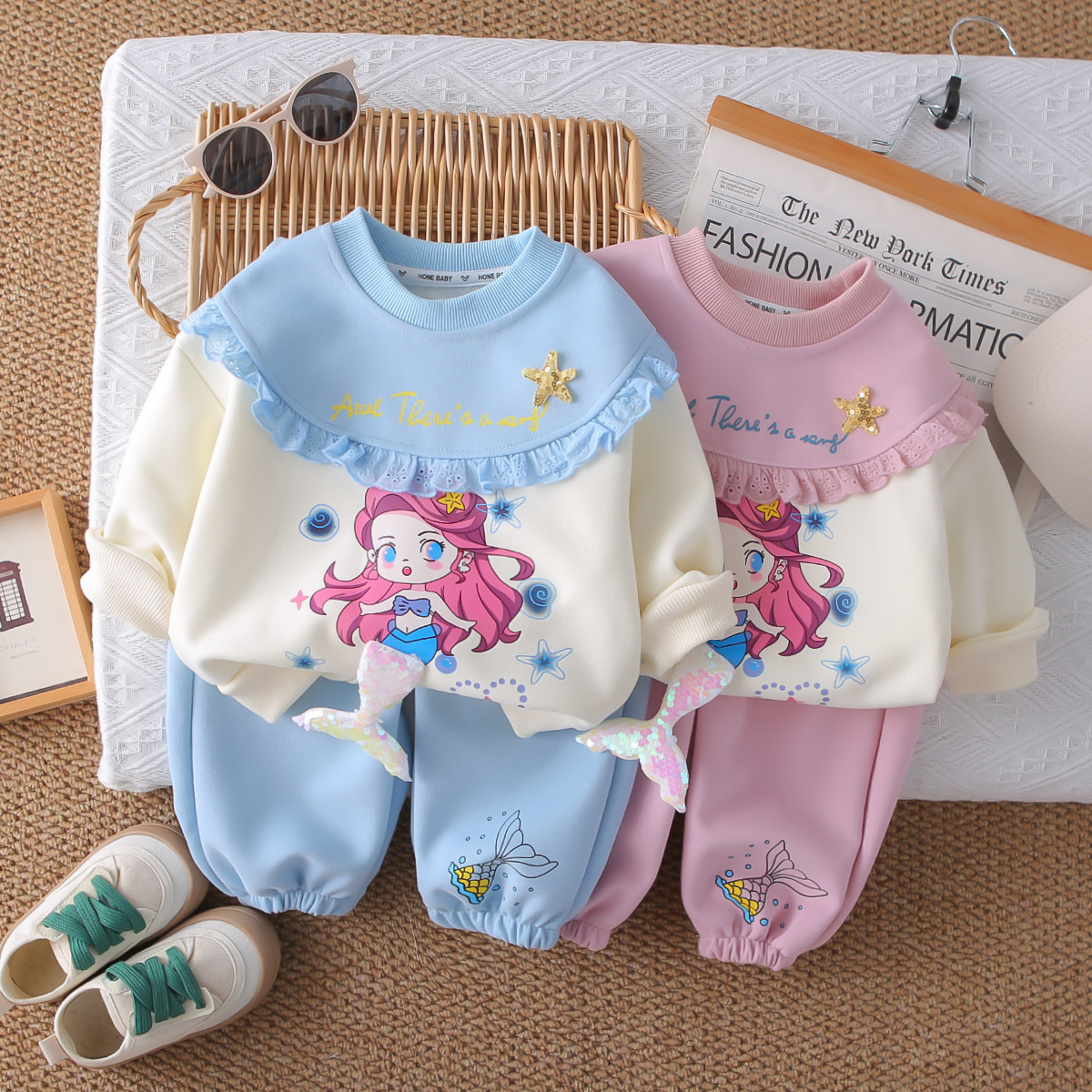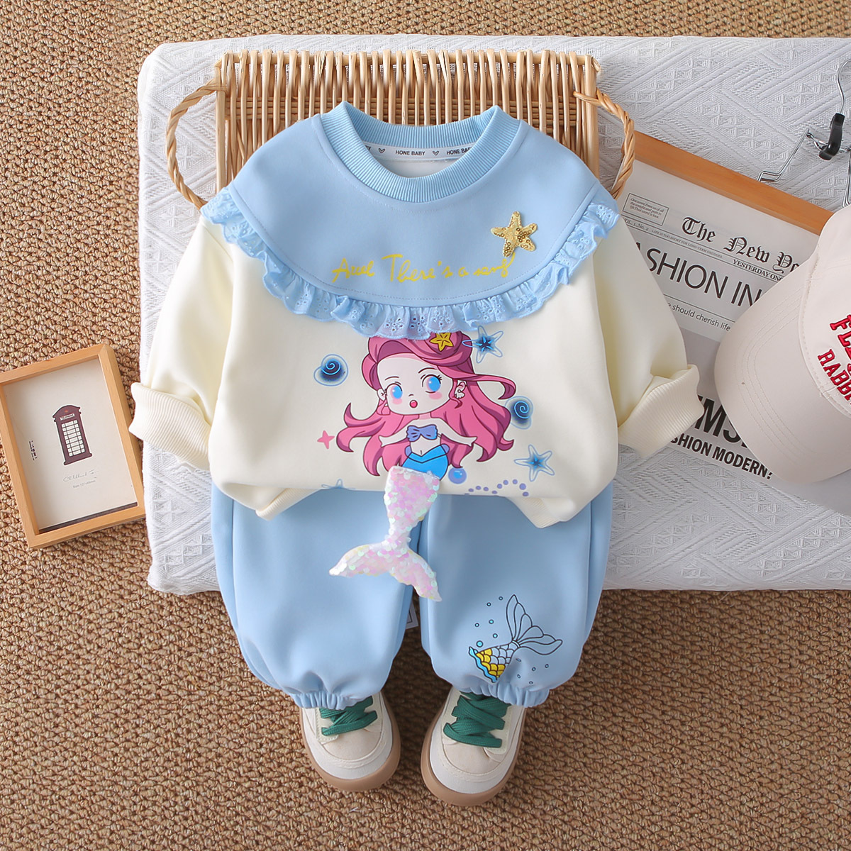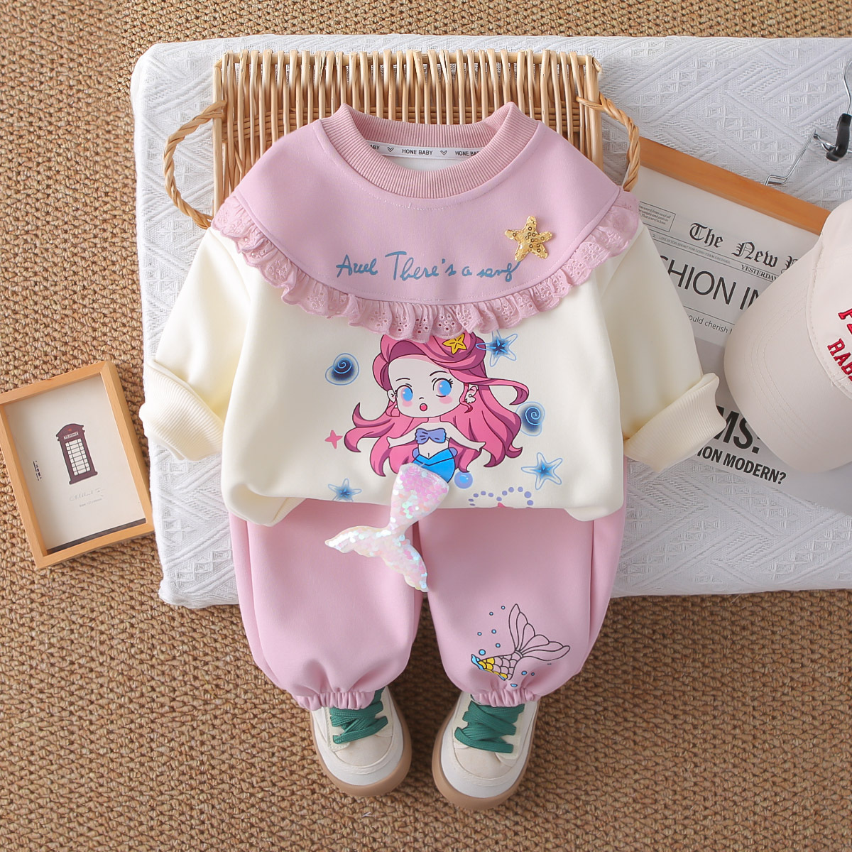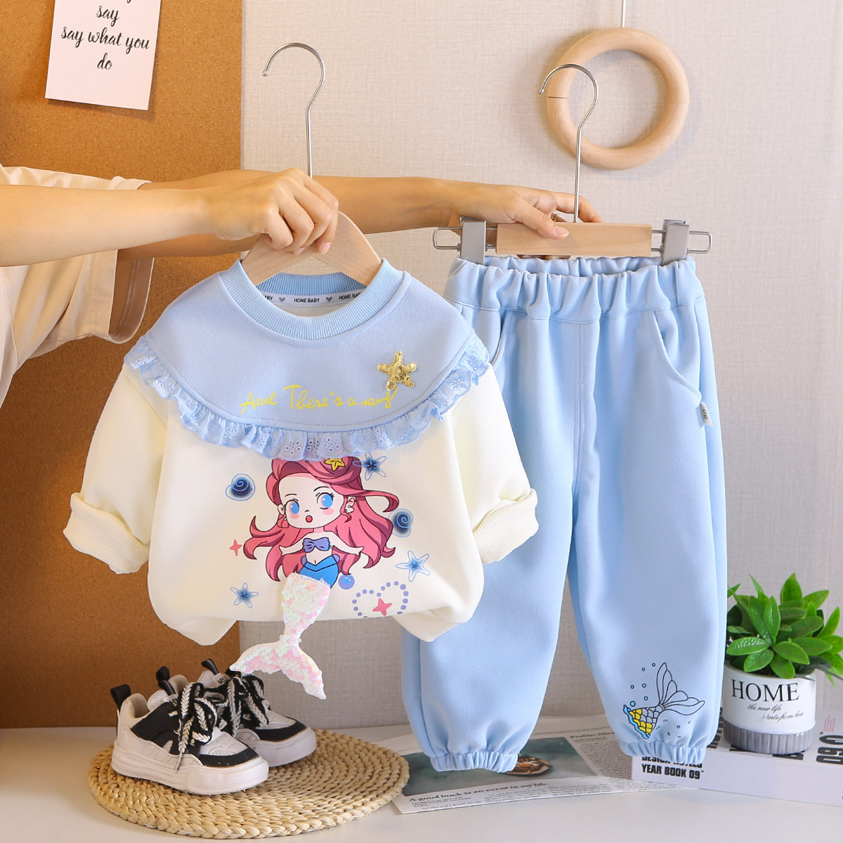 여자 봄, 가을 접합 만화 운동복 정장 2025 새로운 어린이 아기 가을 옷 유행 투피스 세트스토어 가기