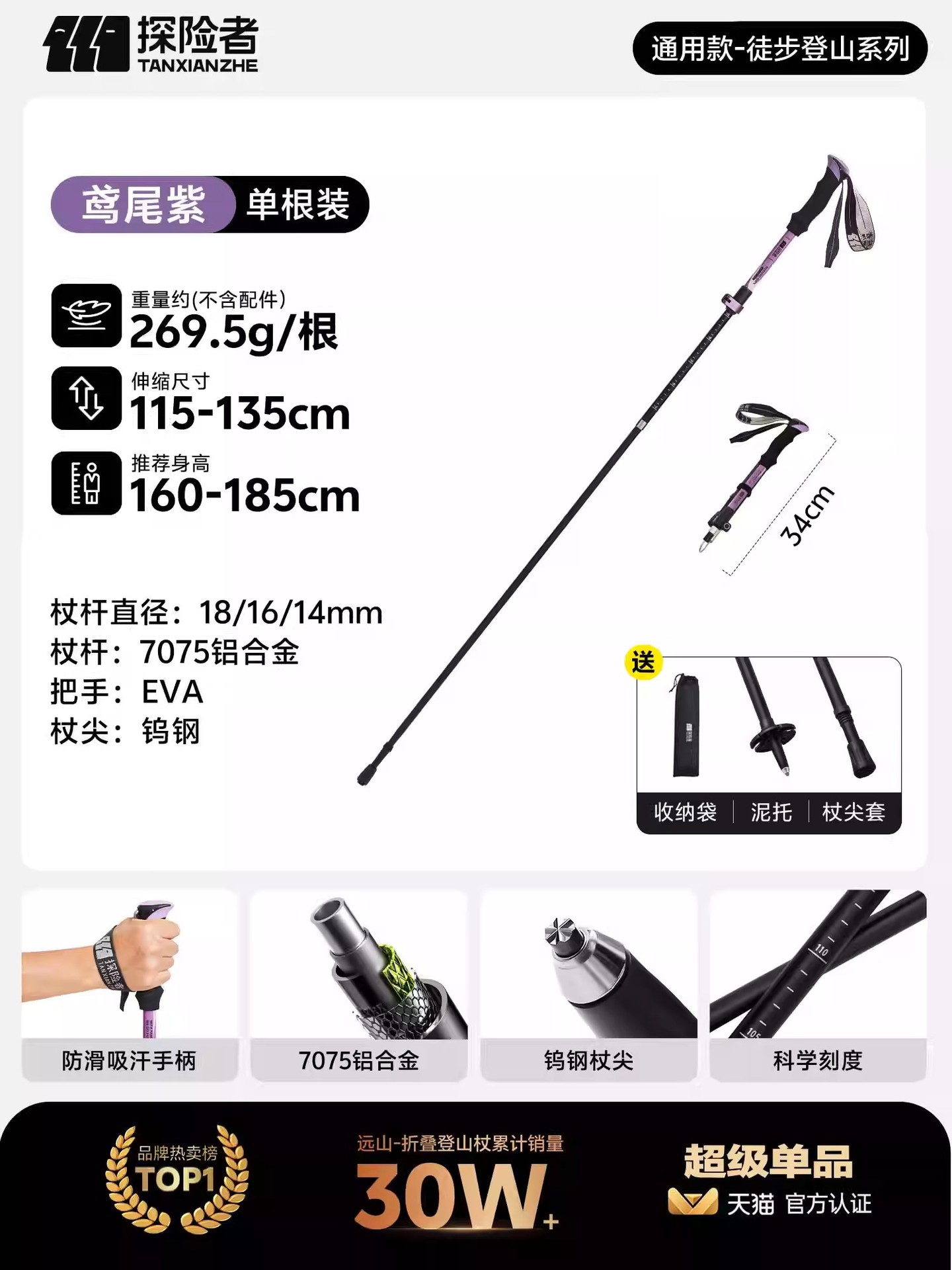 탐험가 등산 스틱, 탄소 섬유 초경량 접이식 텔레스코픽 지팡이, 전문 야외 하이킹 장비 MH스토어 가기