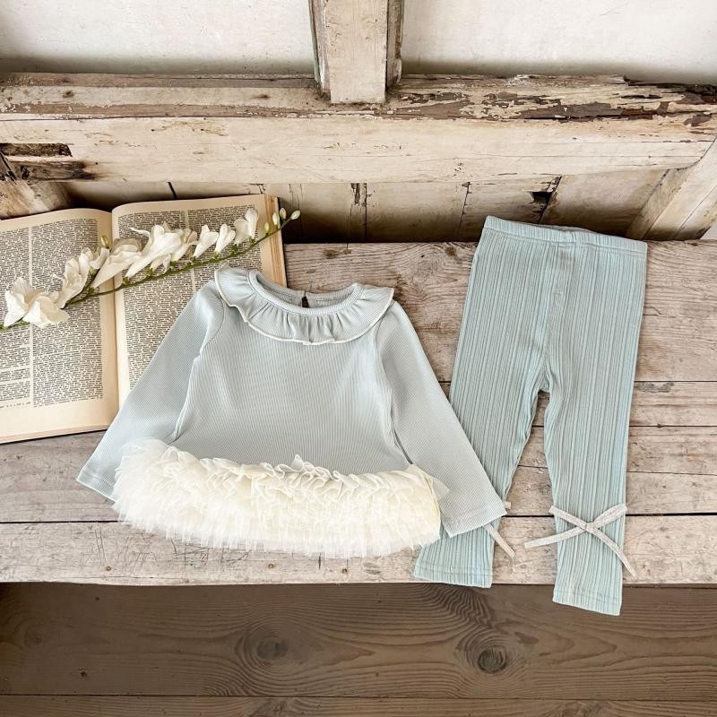 봄과 가을 베이비 펀치 프릴 칼라 메쉬 퍼프 스커트 스타일 티셔츠 바닥 셔츠 소녀 공주 탑 아동복