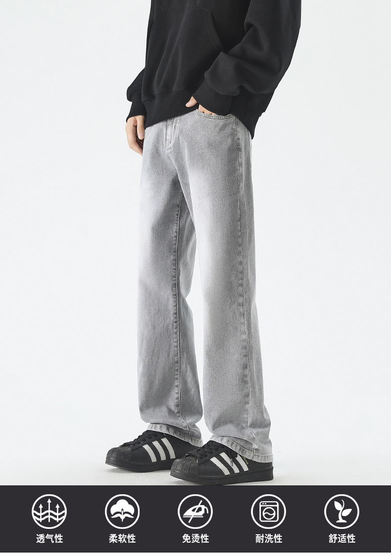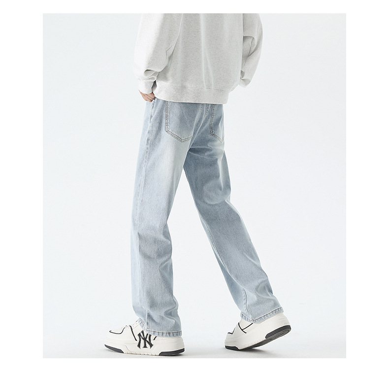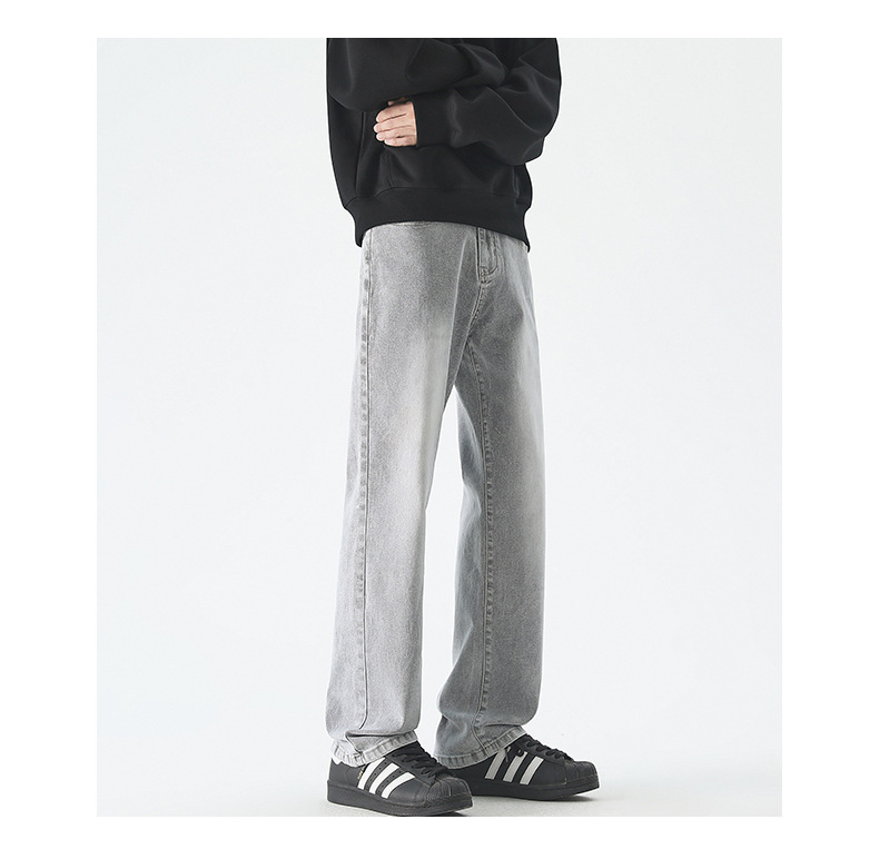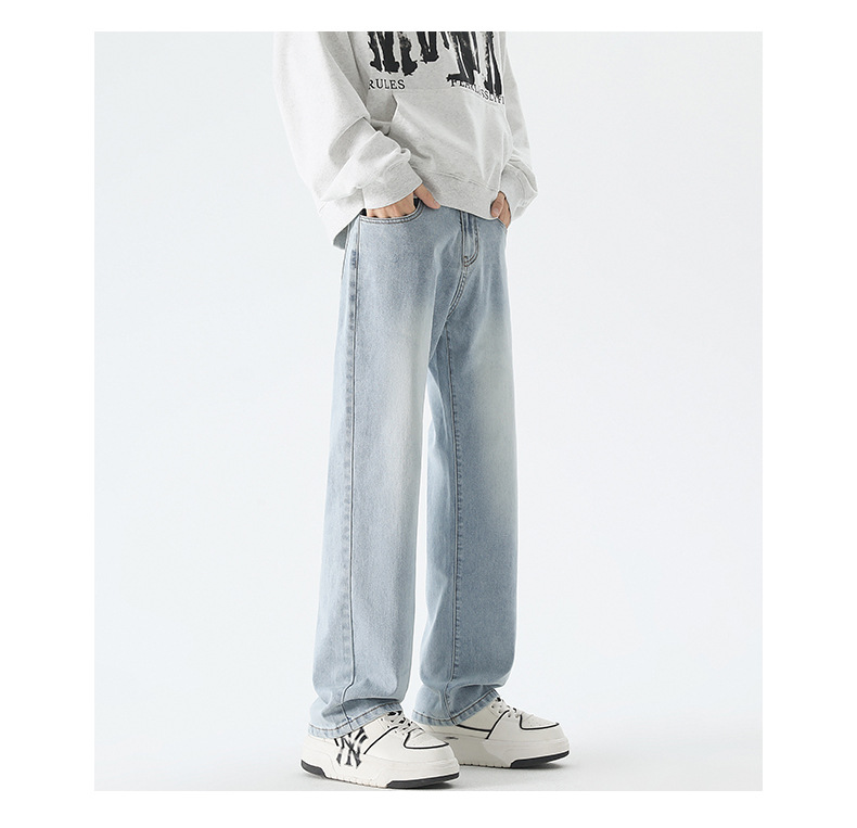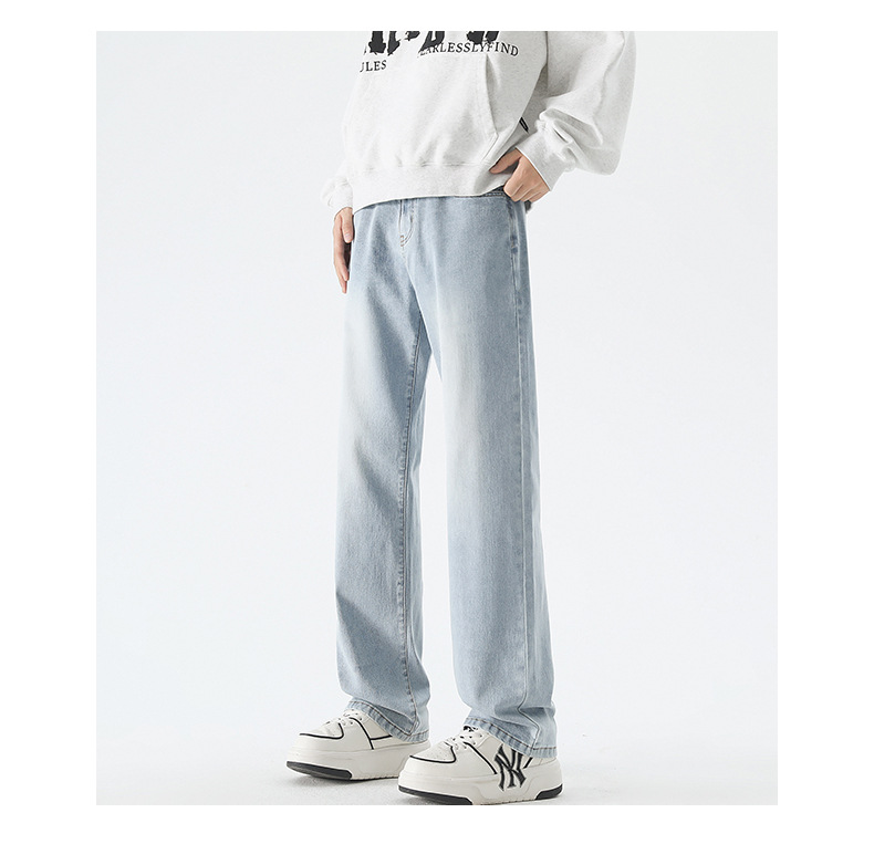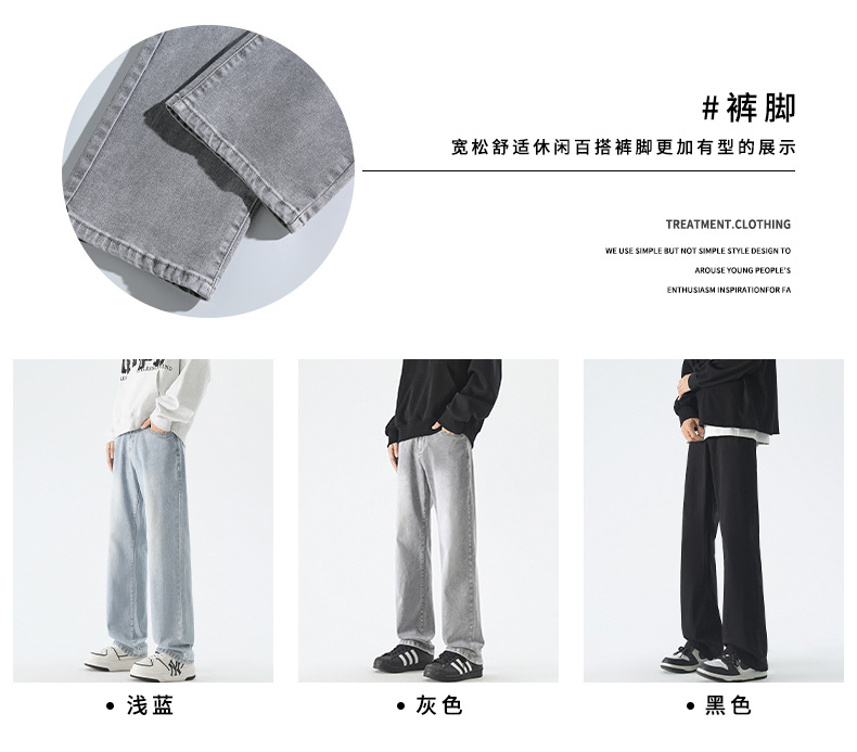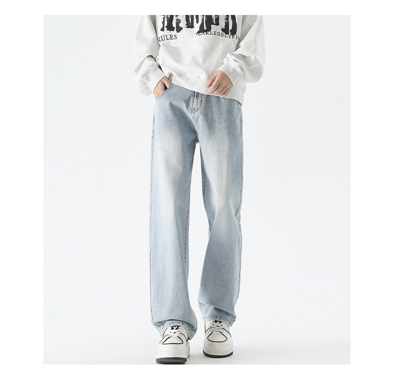 남성용 청바지 여름 2025 새로운 미국 하이 스트리트 루즈하고 다재다능한 남성용 스트레이트 와이드 레그 캐주얼 세이버 바지스토어 가기