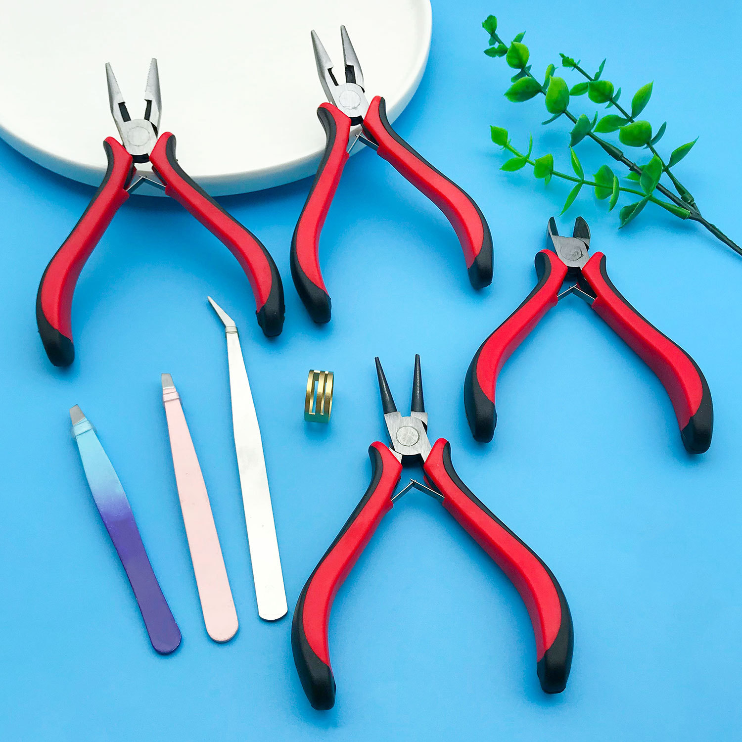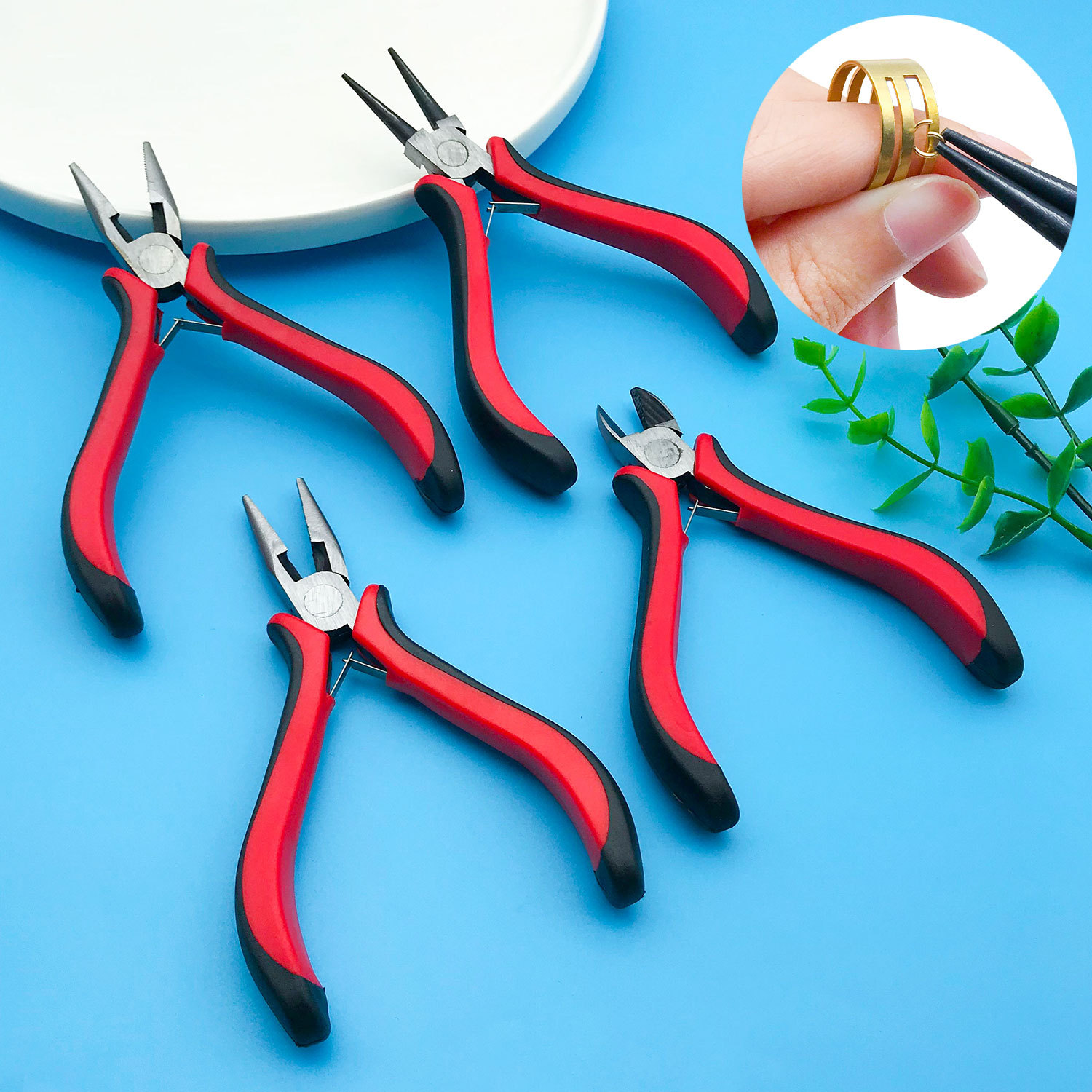 수제 바늘코 펜치, 다기능 도구 도매, 빨간색 두꺼운 손잡이 대각선 펜치, 미니 바늘코 펜치, DIY 강력한 가위스토어 가기