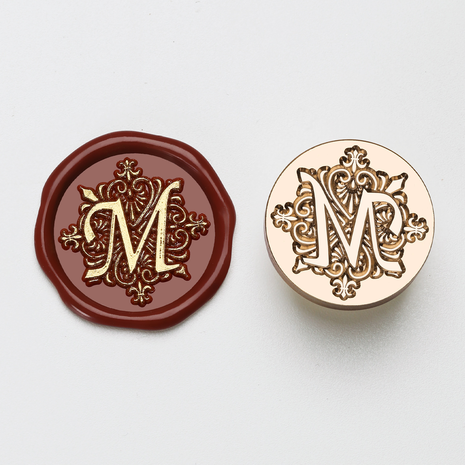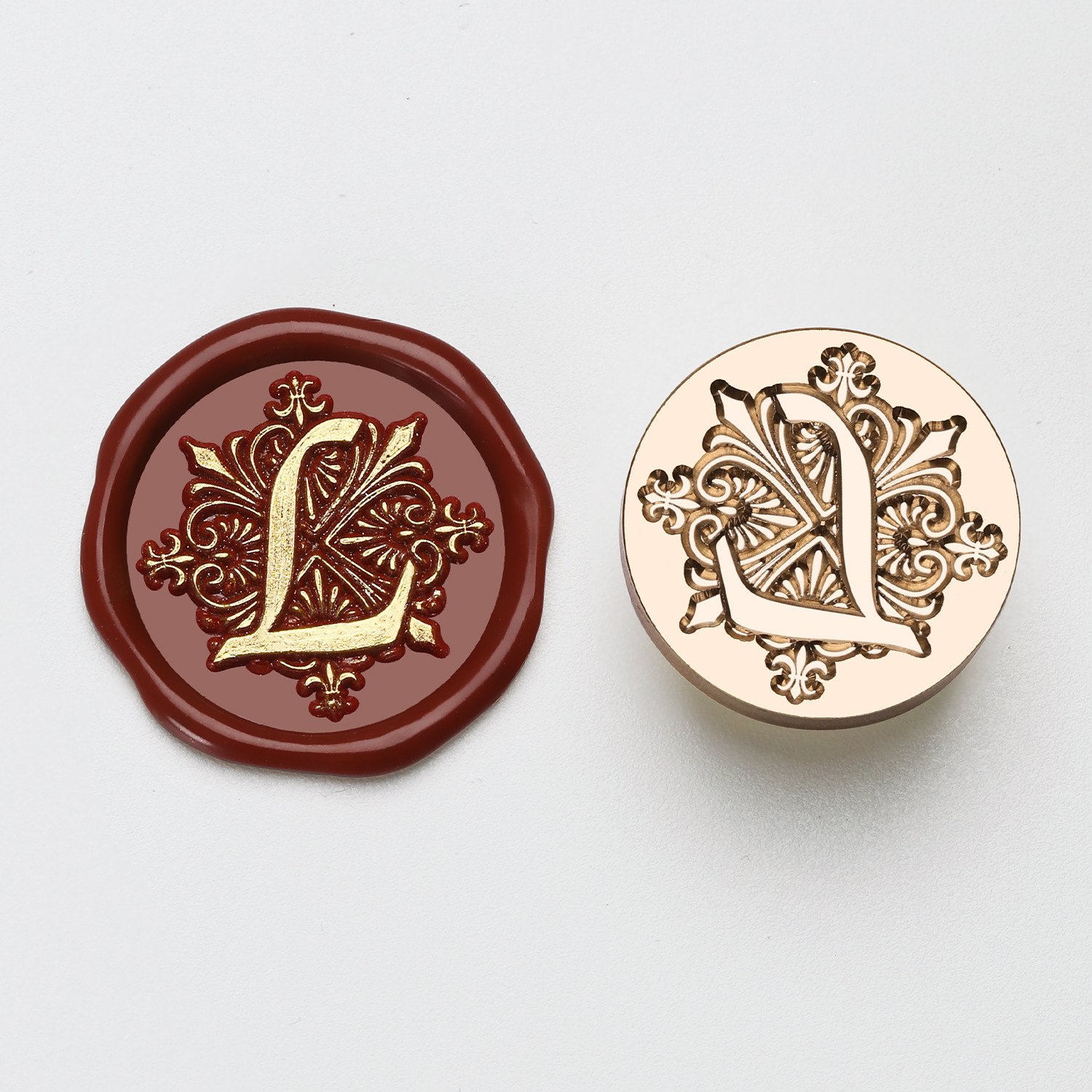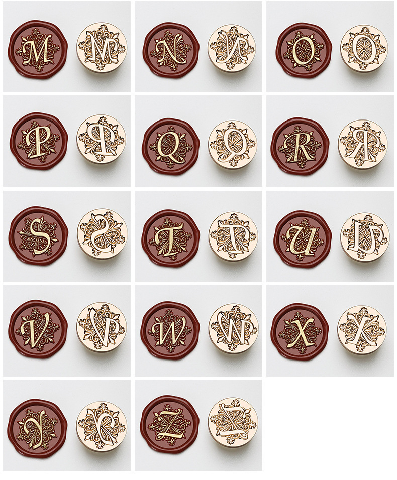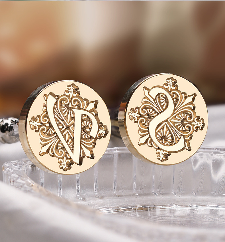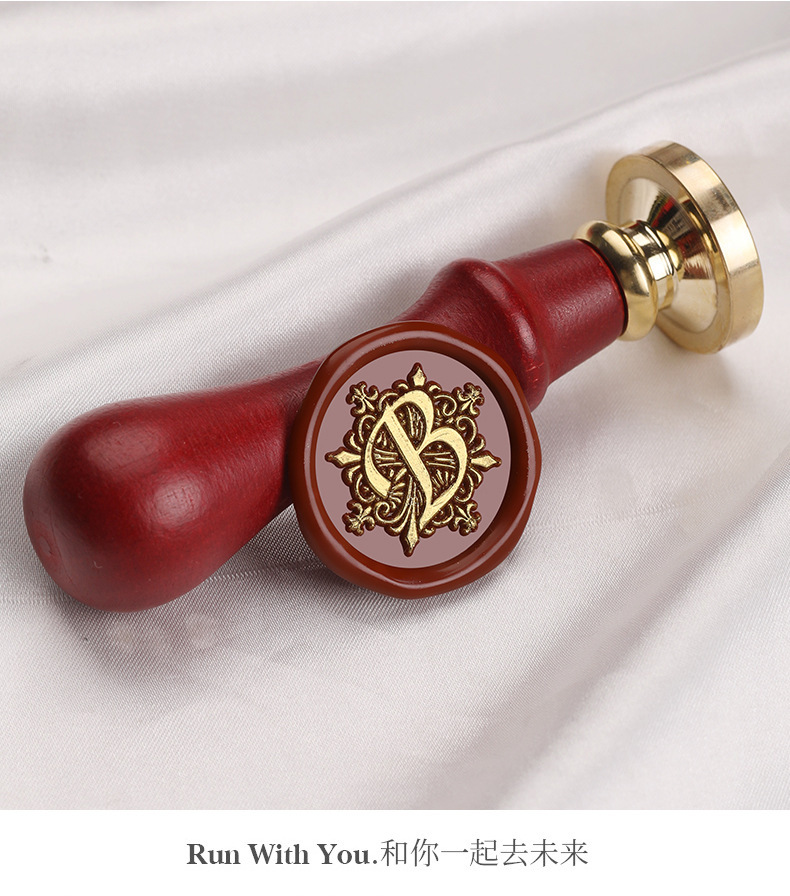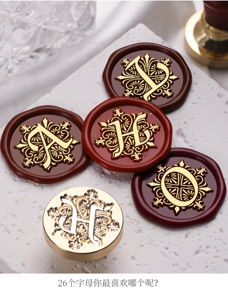 叶子字母激光手柄单章 火漆印章 26个英文字母章头+榉木把柄 套装