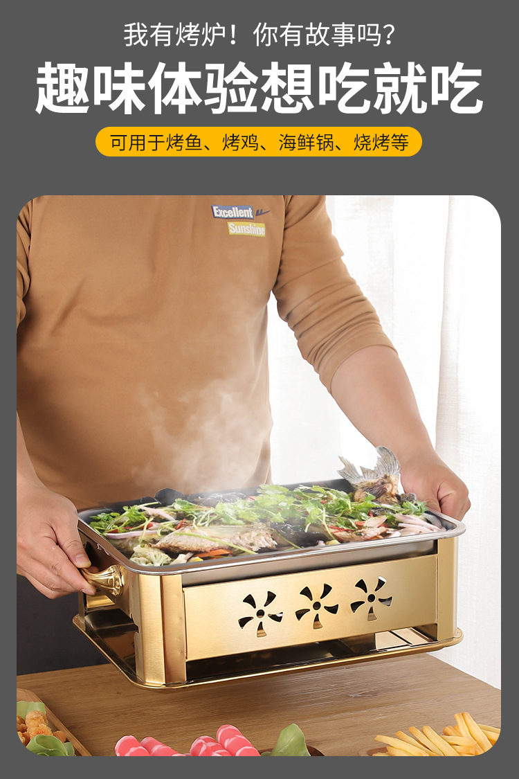 생선구이로, 스테인리스 상업용 생선구이판, 가정용 숯불구이, 숯불구이, 직사각형 알코올로, 야외 숯불스토어 가기