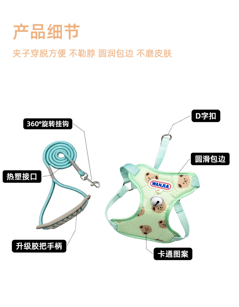 강아지 목줄 소형견 산책줄 외출용 하네스 가슴줄 목줄 탈출방지 귀여운 강아지 목줄
