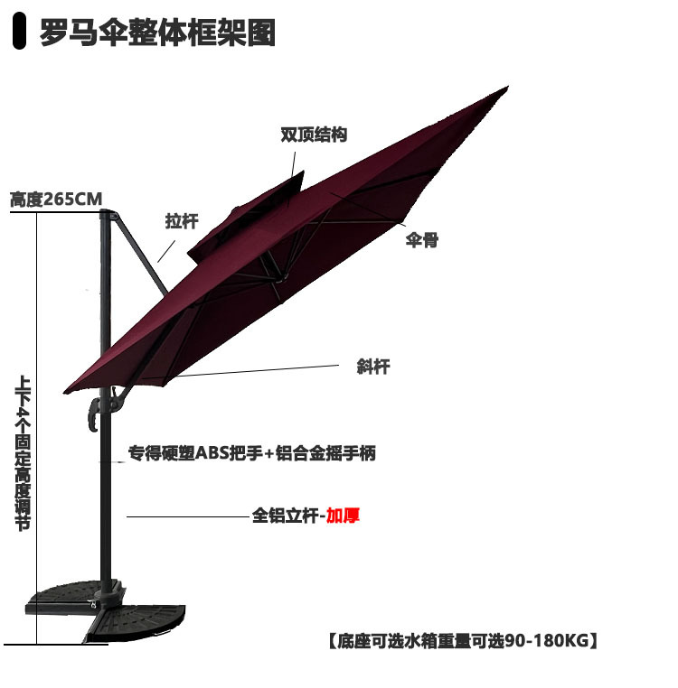야외용 파라솔 호텔 레스토랑 빌라 안뜰 정원 야외 테라스 올알루미늄 레저용 이중 지붕 로마형 우산