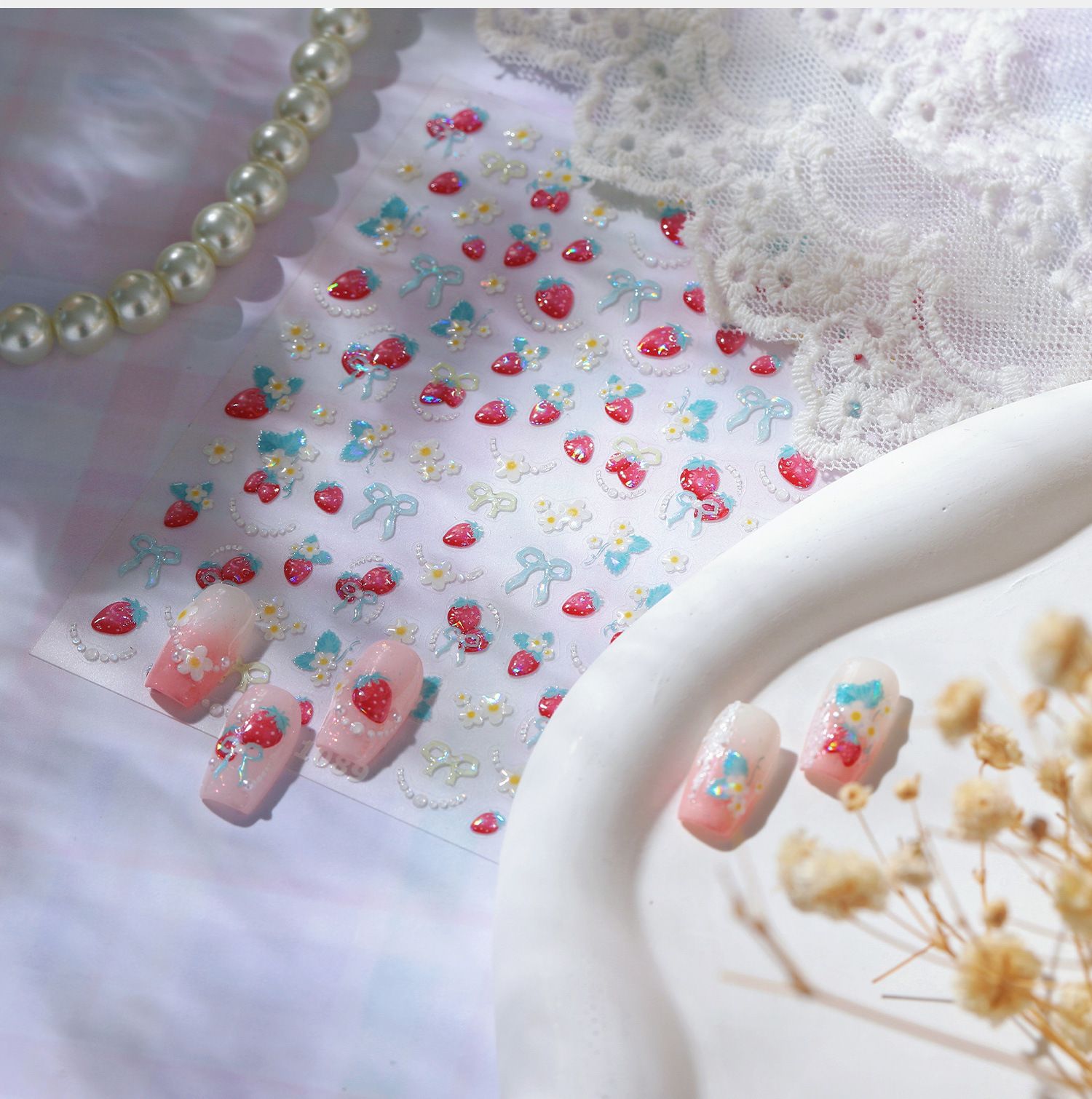 테르레나이트 다이아몬드 네일 아트 스티커 diy 인기 휴대 전화 케이스 어린이 네일 스티커 레드 체리 쥬얼리 스티커 네일 아트 M-스토어 가기