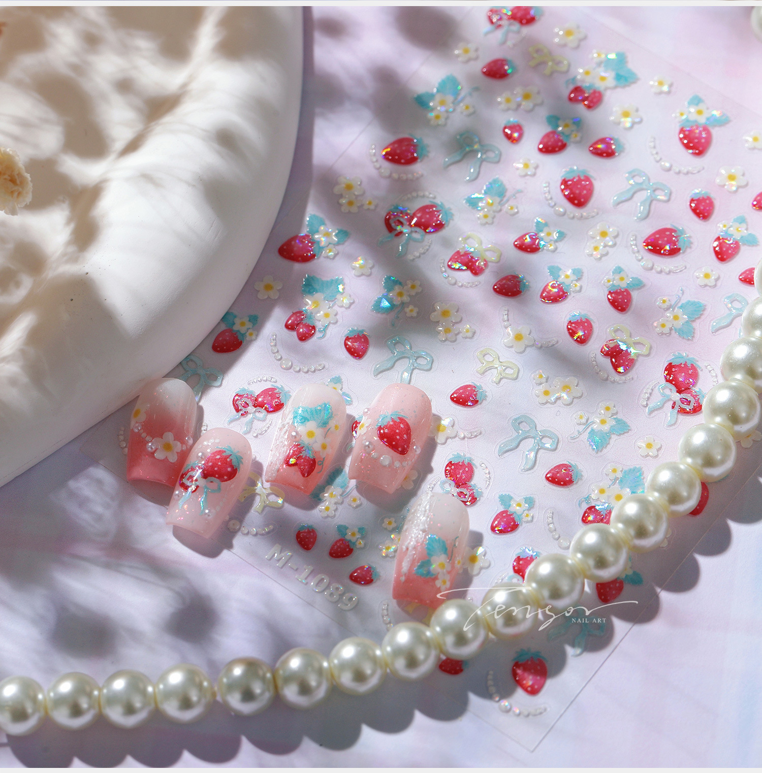 테르레나이트 다이아몬드 네일 아트 스티커 diy 인기 휴대 전화 케이스 어린이 네일 스티커 레드 체리 쥬얼리 스티커 네일 아트 M-