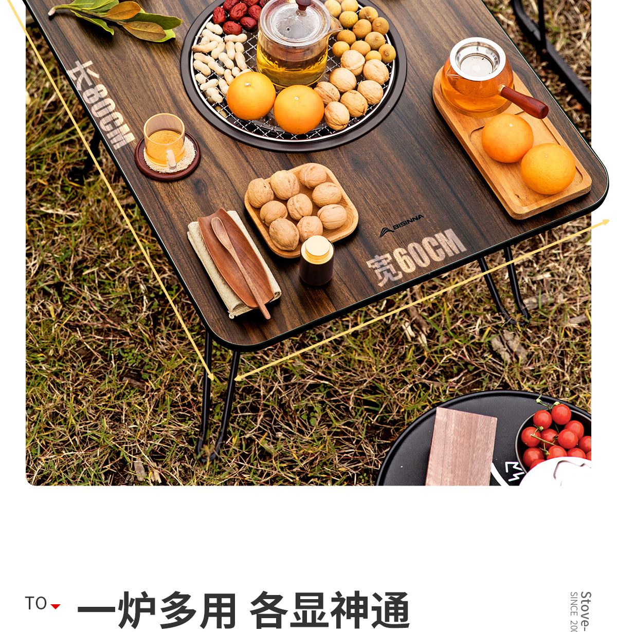 Beishanlang 야외 차 요리 접이식 테이블 캠핑 바베큐 테이블 홈 야외 휴대용 피크닉 숯 난로스토어 가기