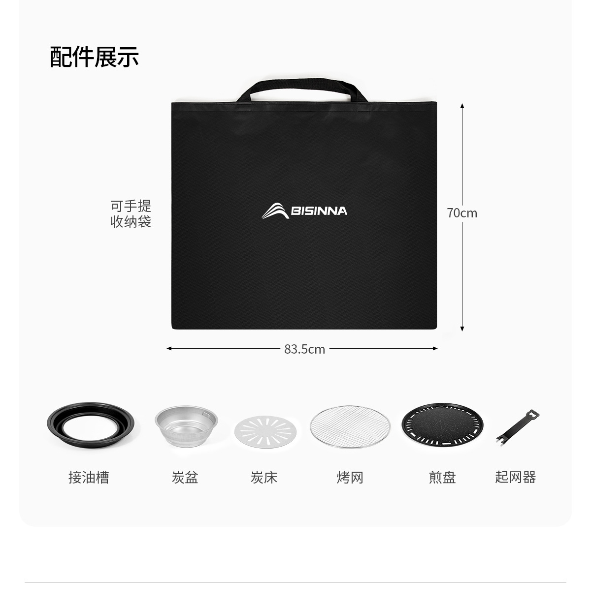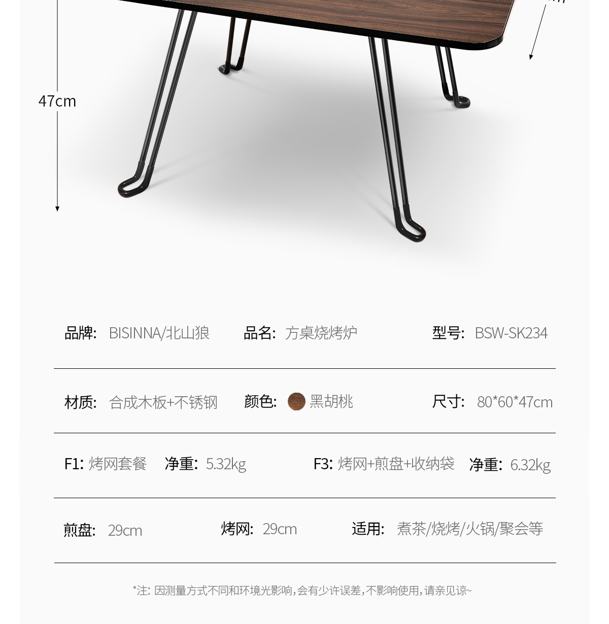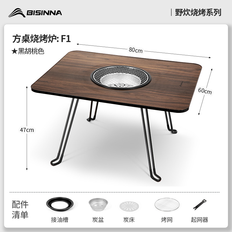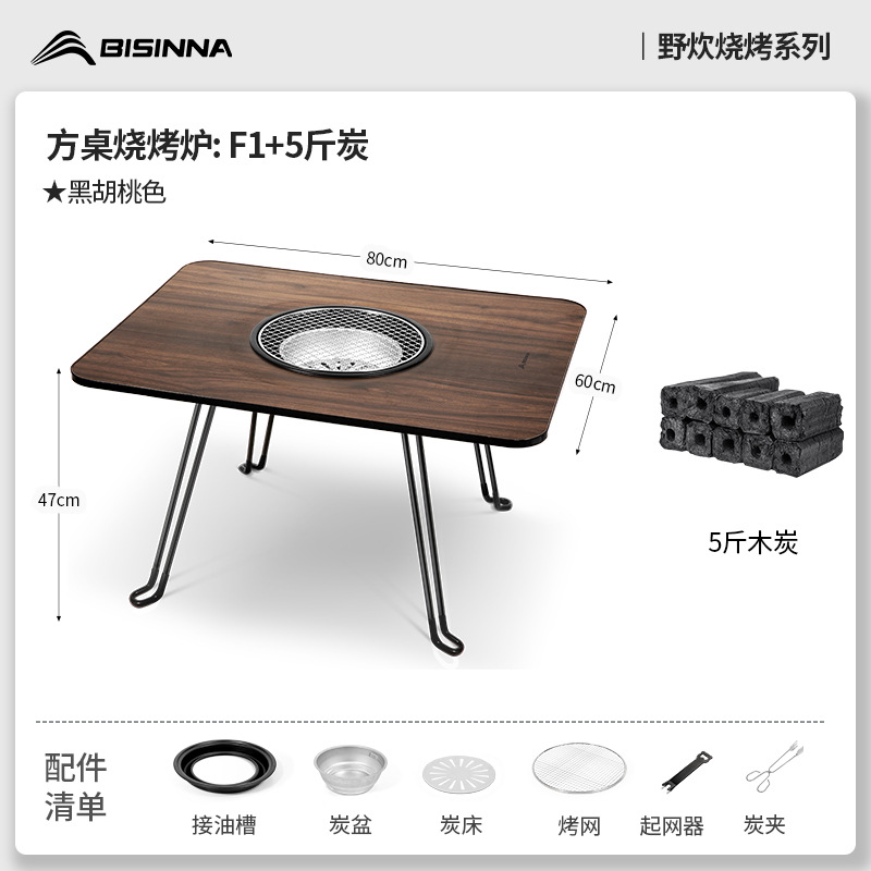 • 블랙 월넛 F3: 사각 테이블 오븐 + 그릴 그리드 + 프라이팬 + 보관 가방 + 숯 2.5kg개 + 숯 클립