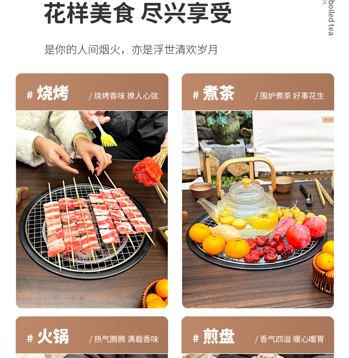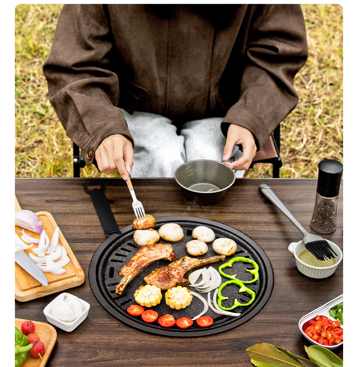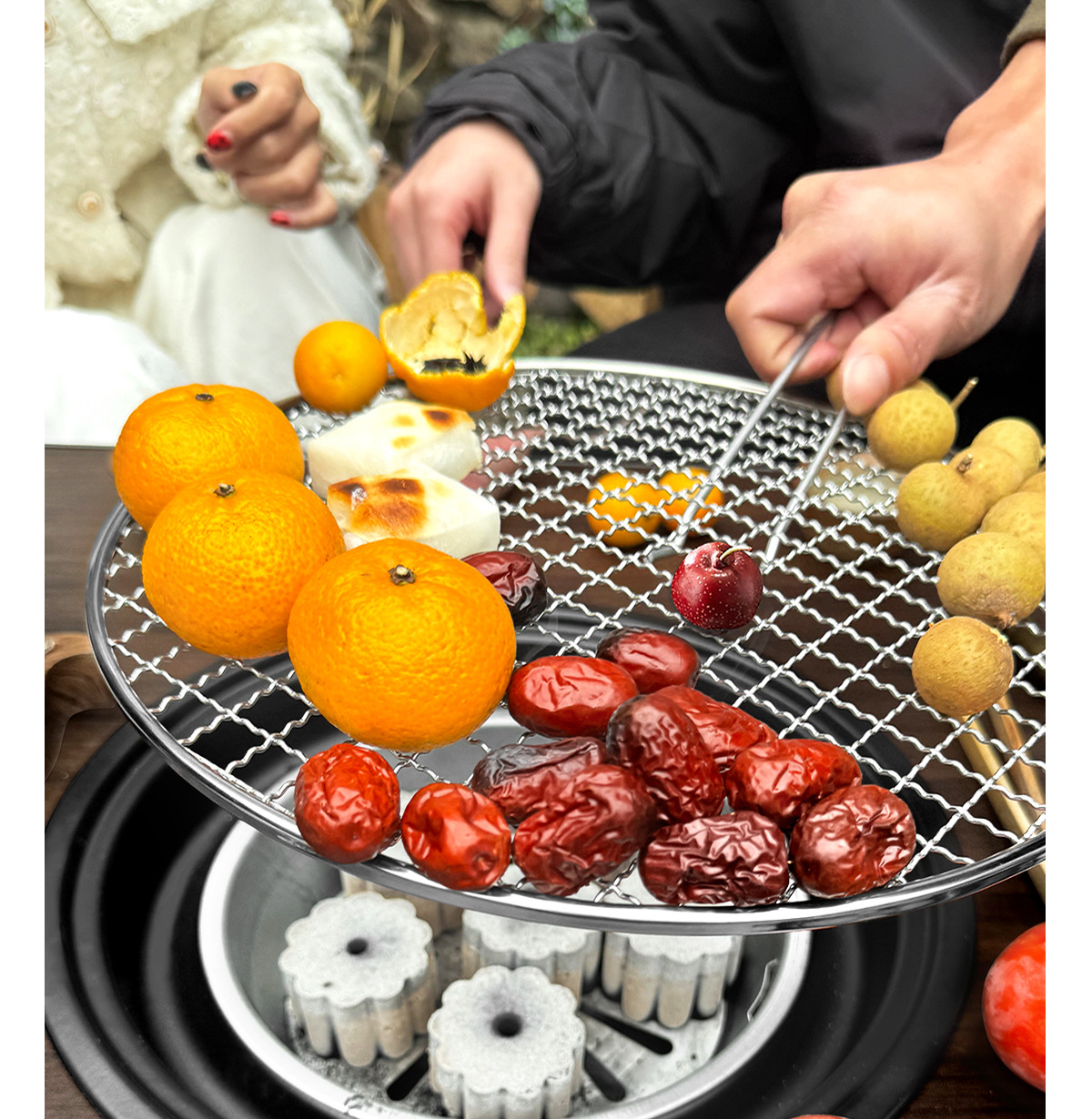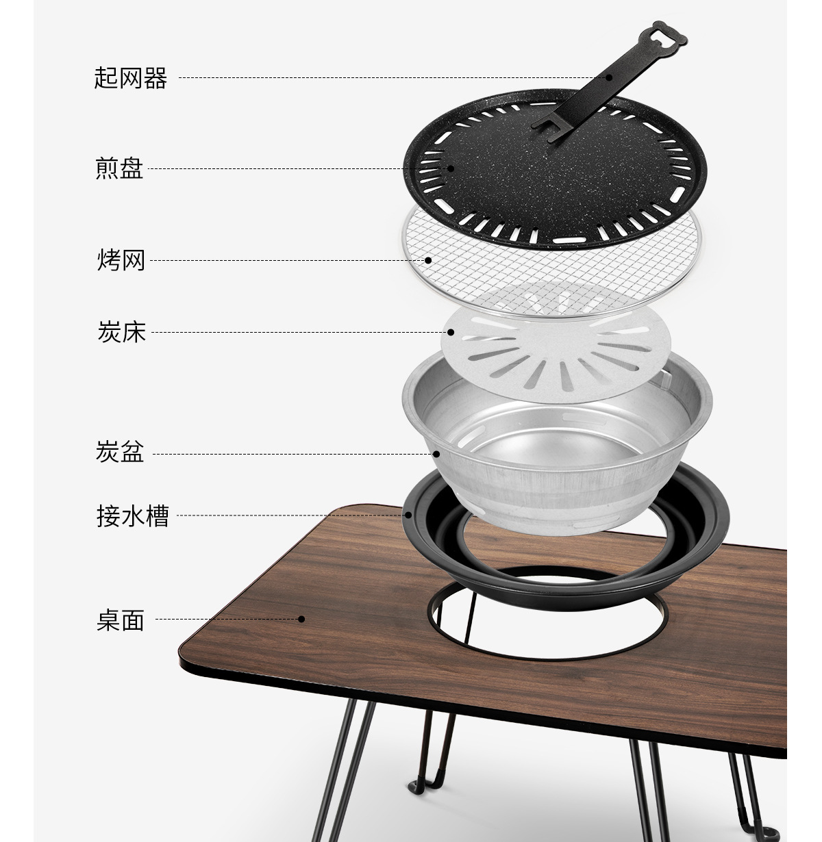 • 블랙 월넛 F3: 사각 테이블 오븐 + 그릴 그리드 + 프라이팬 + 보관 가방 + 숯 2.5kg개 + 숯 클립