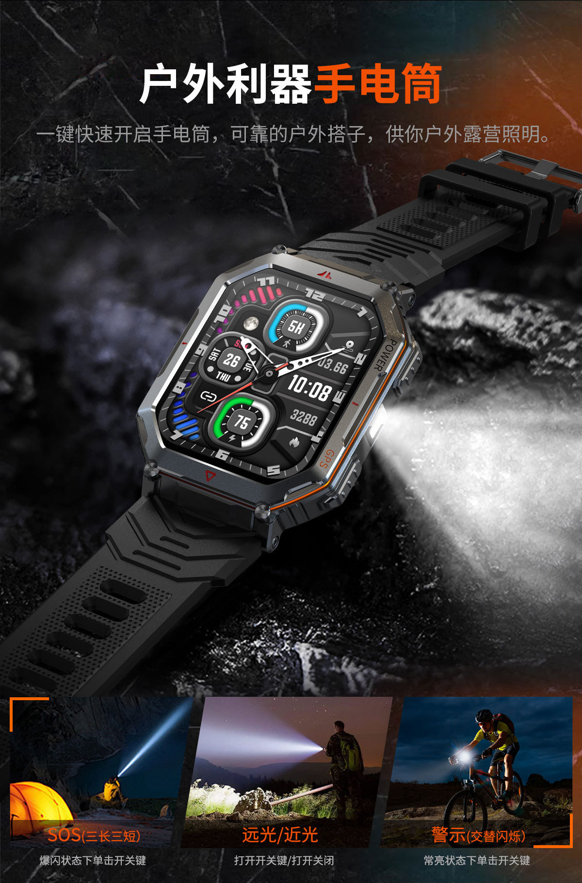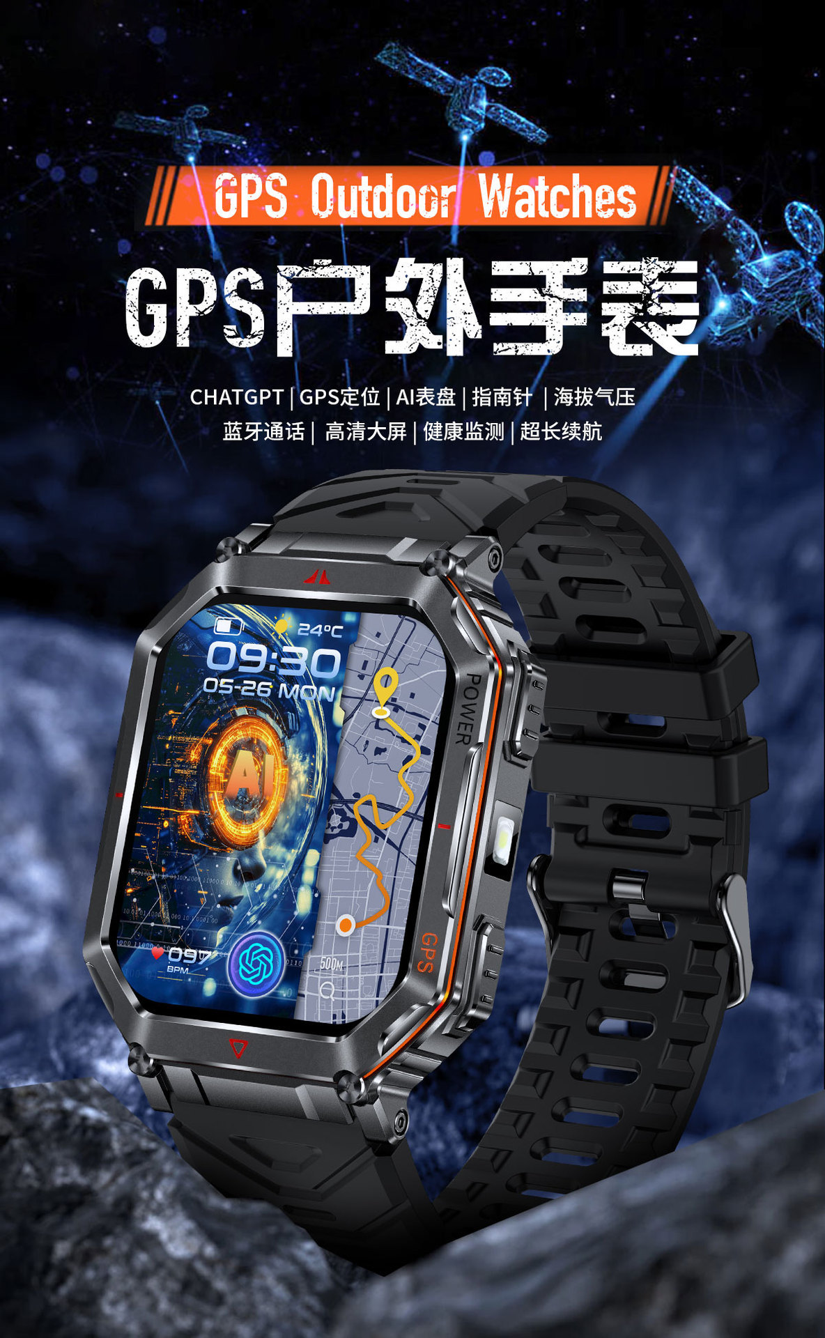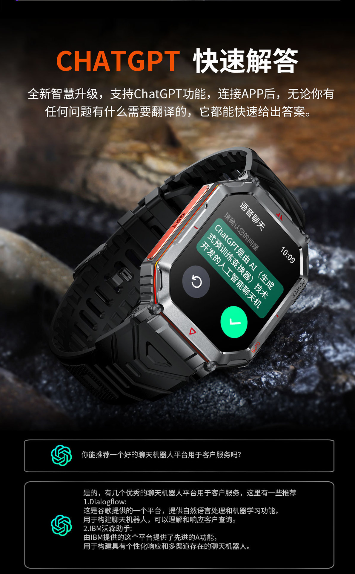 새로운 KR92 스마트워치 GPS 위치추적 AI 다이얼 음성지원 LED 손전등 카메라 남성용 팔찌