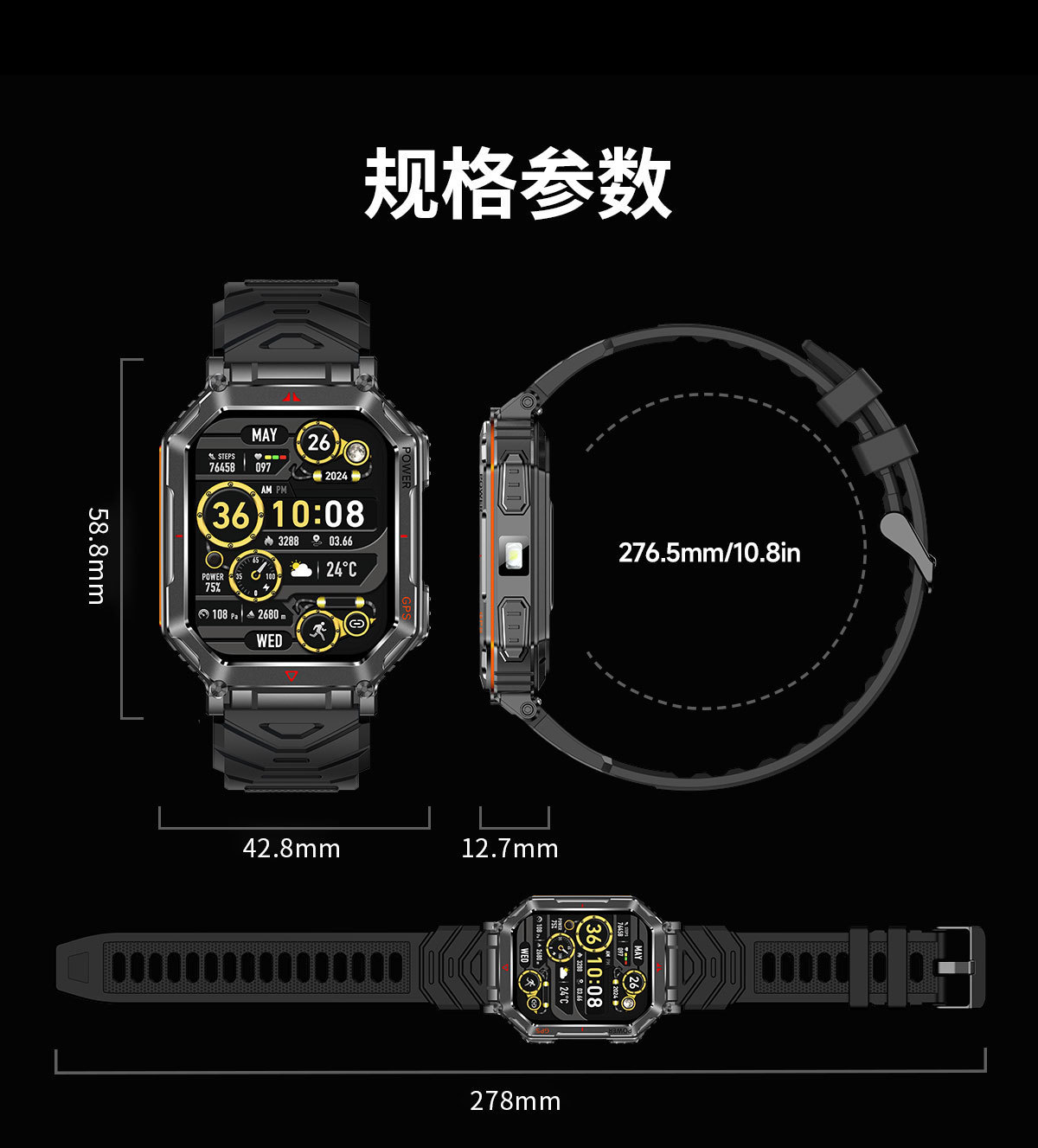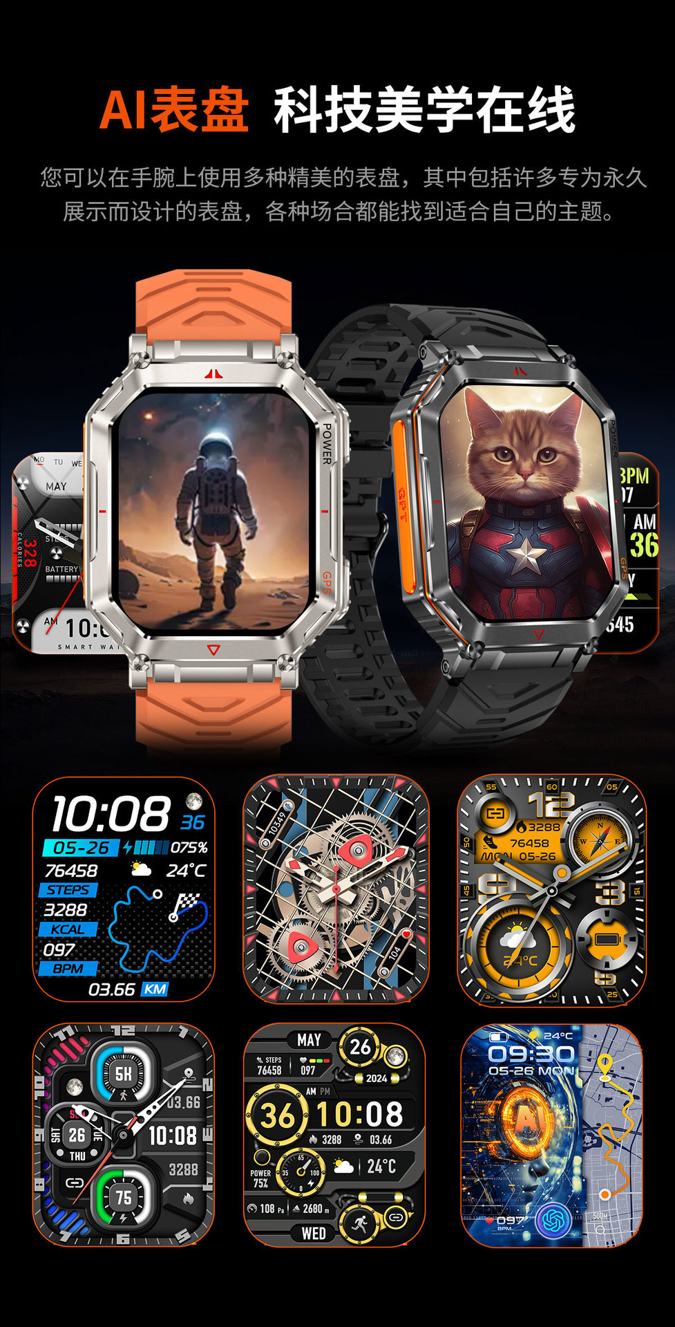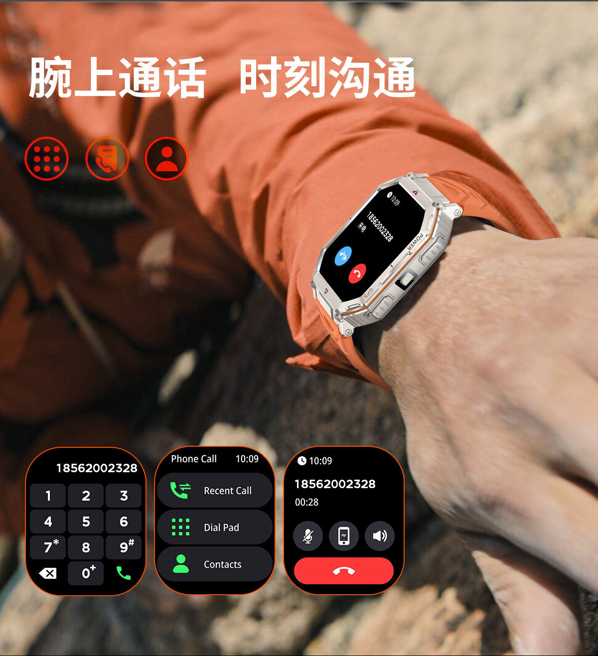 새로운 KR92 스마트워치 GPS 위치추적 AI 다이얼 음성지원 LED 손전등 카메라 남성용 팔찌