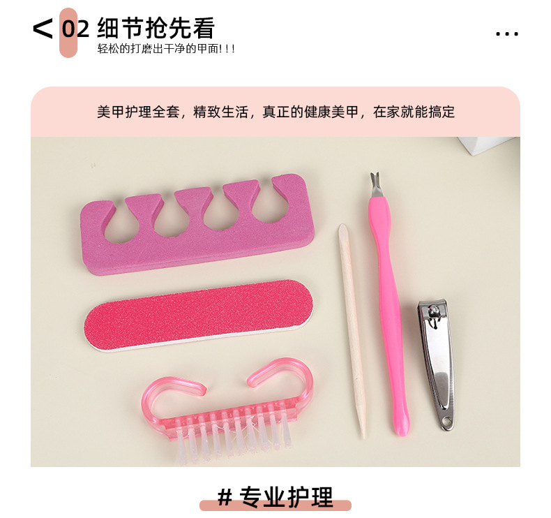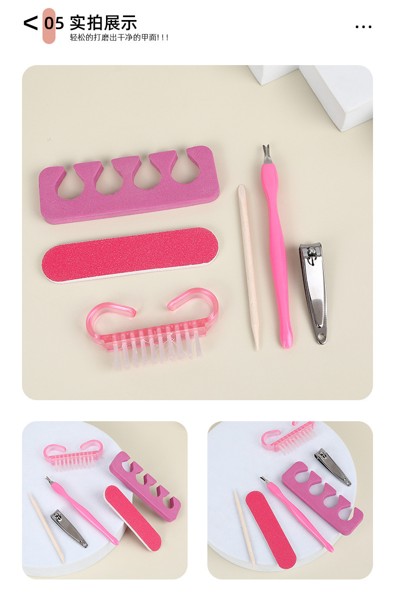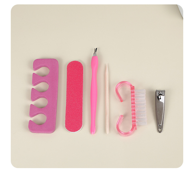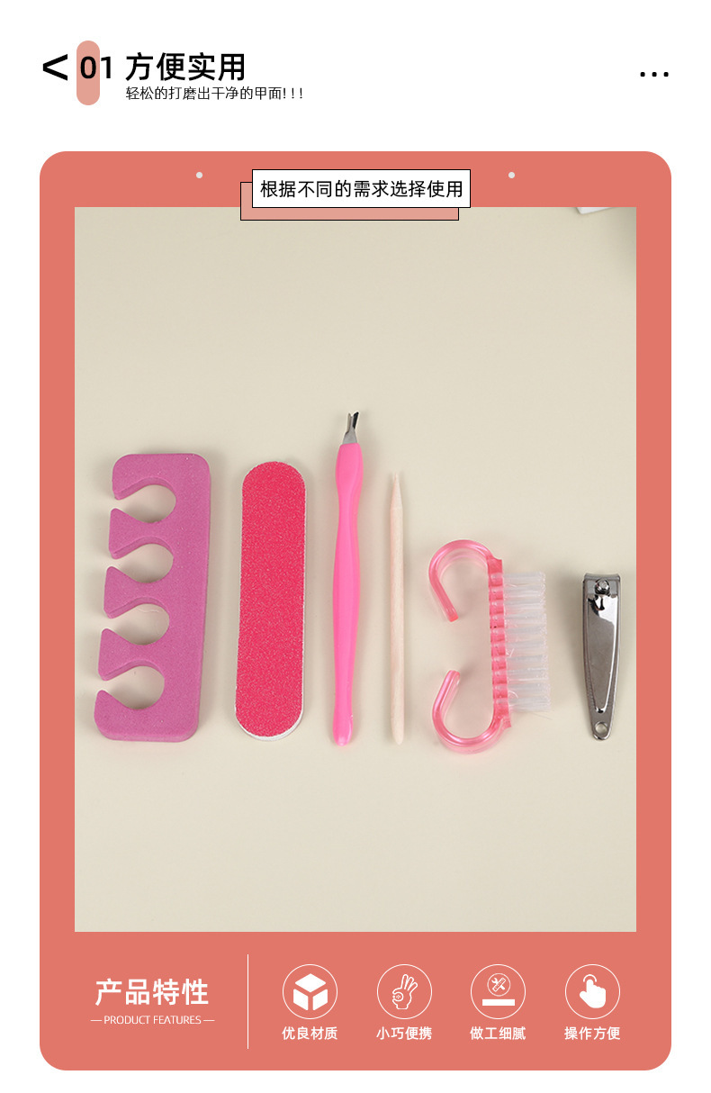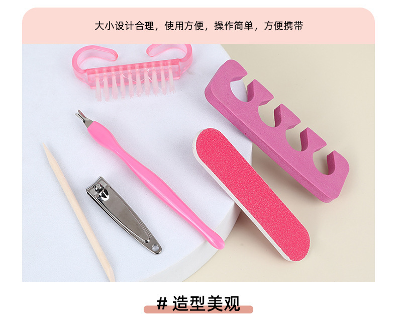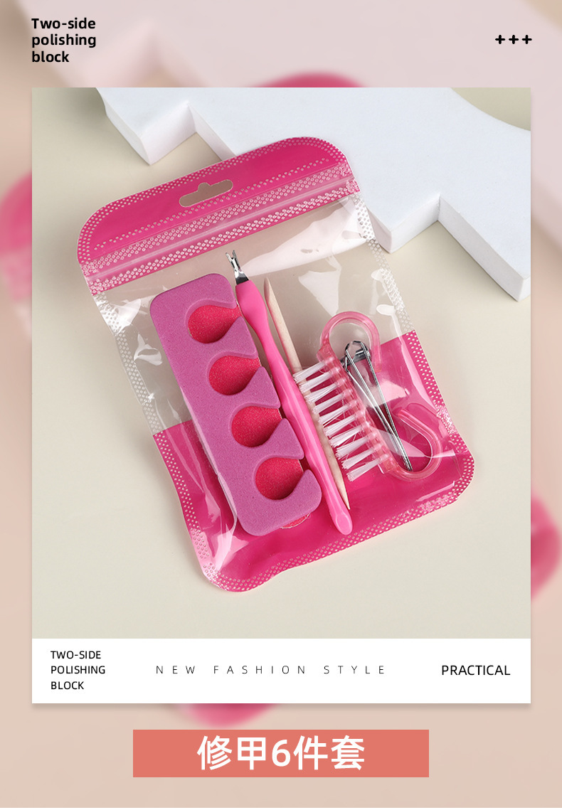 휴대용 매니큐어 세트 로즈 레드 네일 파일 폴리싱 스트립 코너 브러쉬 각질 제거 도구 매니큐어 6 피스 세트스토어 가기