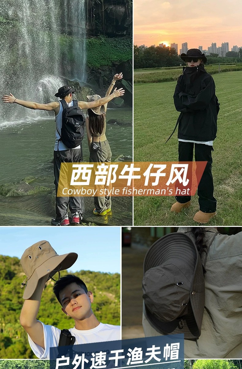야외 여행 등산 모자, 멋진 서양 카우보이 모자, 여름 자외선 차단, 챙이 큰 하이킹 및 캠핑용 태양 모자스토어 가기