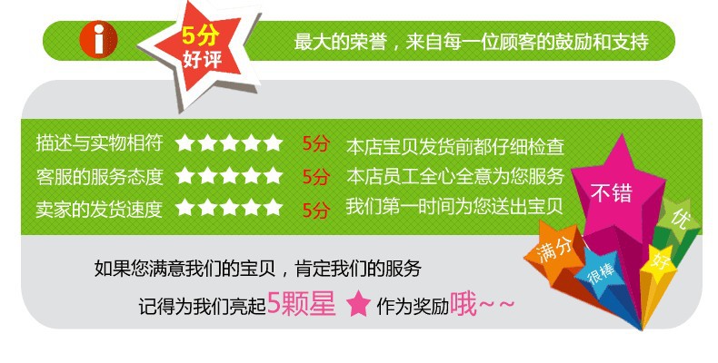 特别强调:我们不接受退货和退款(但因出厂质量问题产品可协商换货 ,但所产生运输费用需要由买家负责,我们报价都是不含任何费用的澄海 , 虽然我司均有质量检验员对产品进行产前、产中、产后等严格检查,确保产品质量没有问题才会出货,但因各种不确定因素,我司只可保证到货后97%-98% 的产品质量无问题,2%-3%属免责范围。)