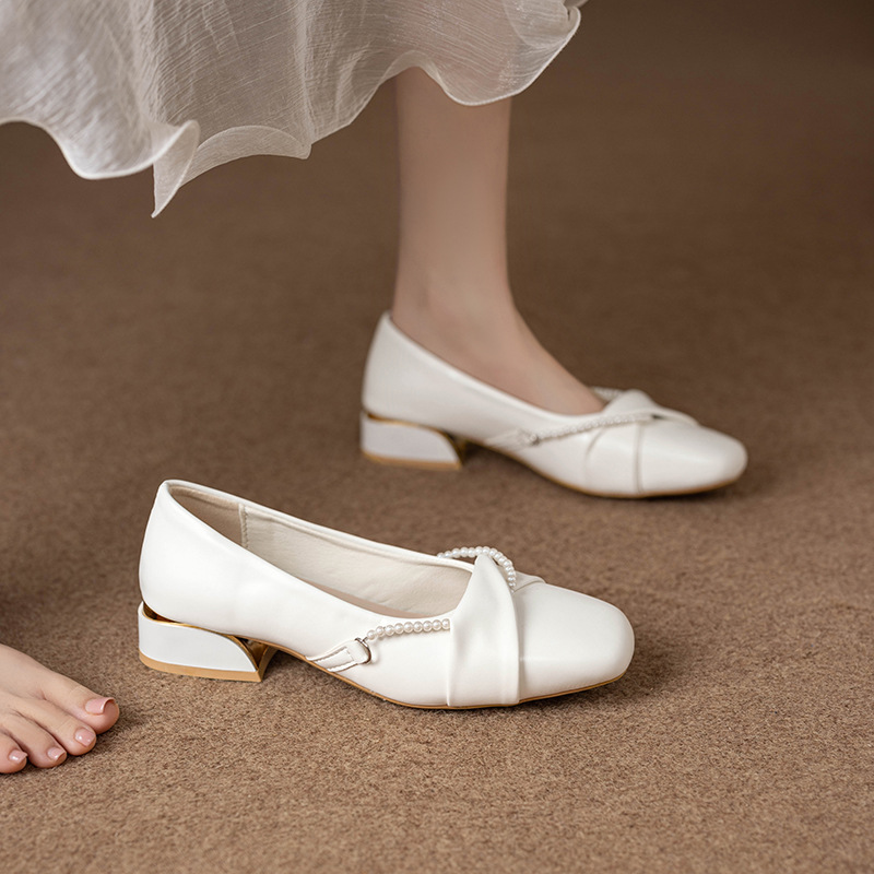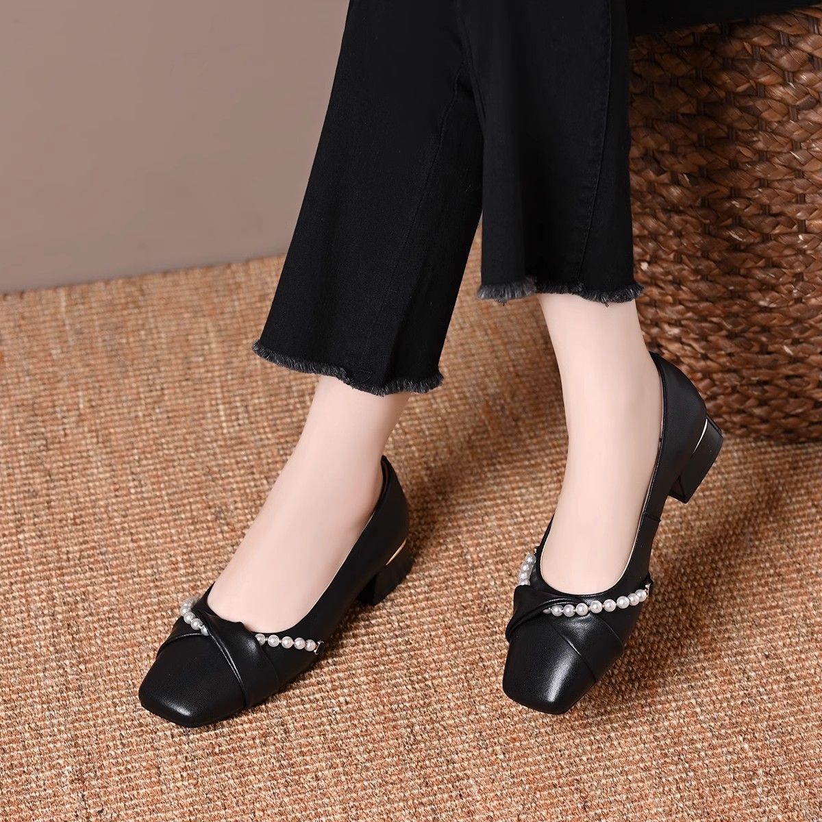 여성을 위한 서양식 로우힐 패셔너블 슈즈 2025년 봄 여름 스커트 프렌치 이브닝 스타일 3cm 작은 힐스토어 가기