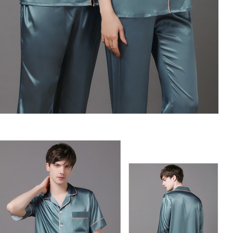실크 잠옷 커플 반팔 간단한 양복 대형 실크 남성용 얇은 뽕나무 실크 여성용 웨딩 선물 상자스토어 가기