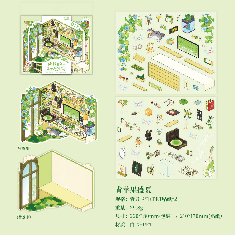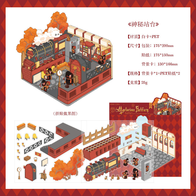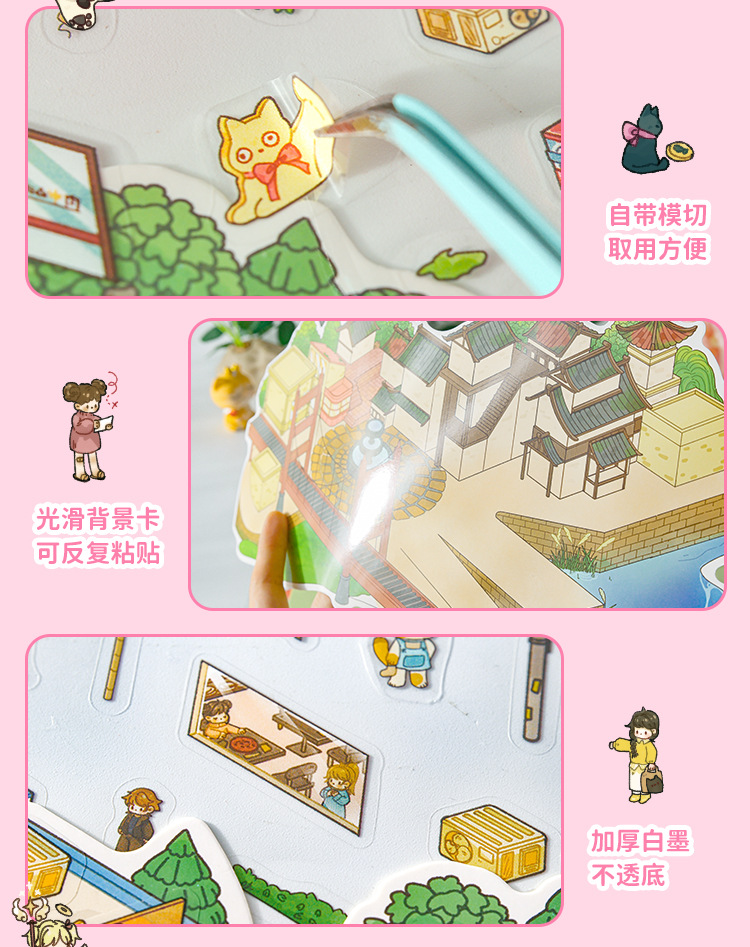 모옌무얀 2.5D 풍경 스티커 작은 마을 유민집 귀여운 핸드북 스티커 재미있는 DIY 장식 어린이 스티커스토어 가기