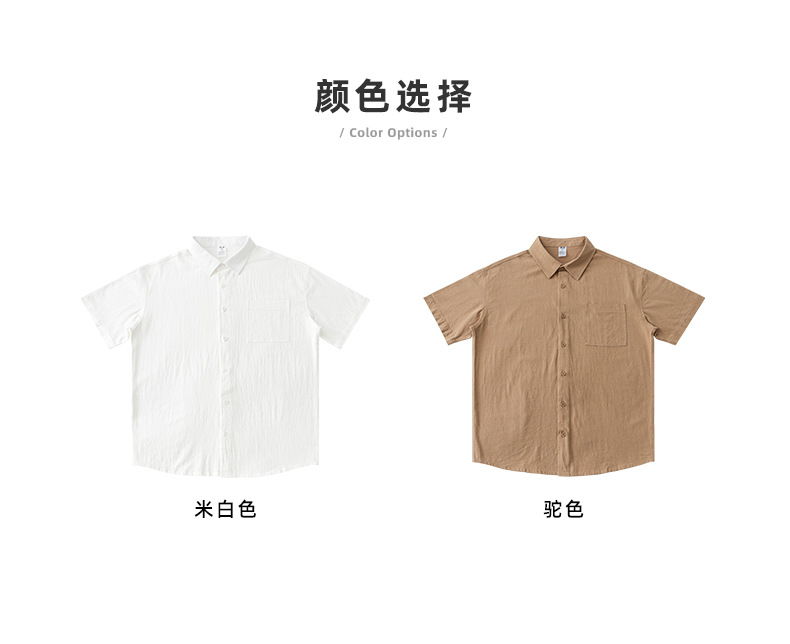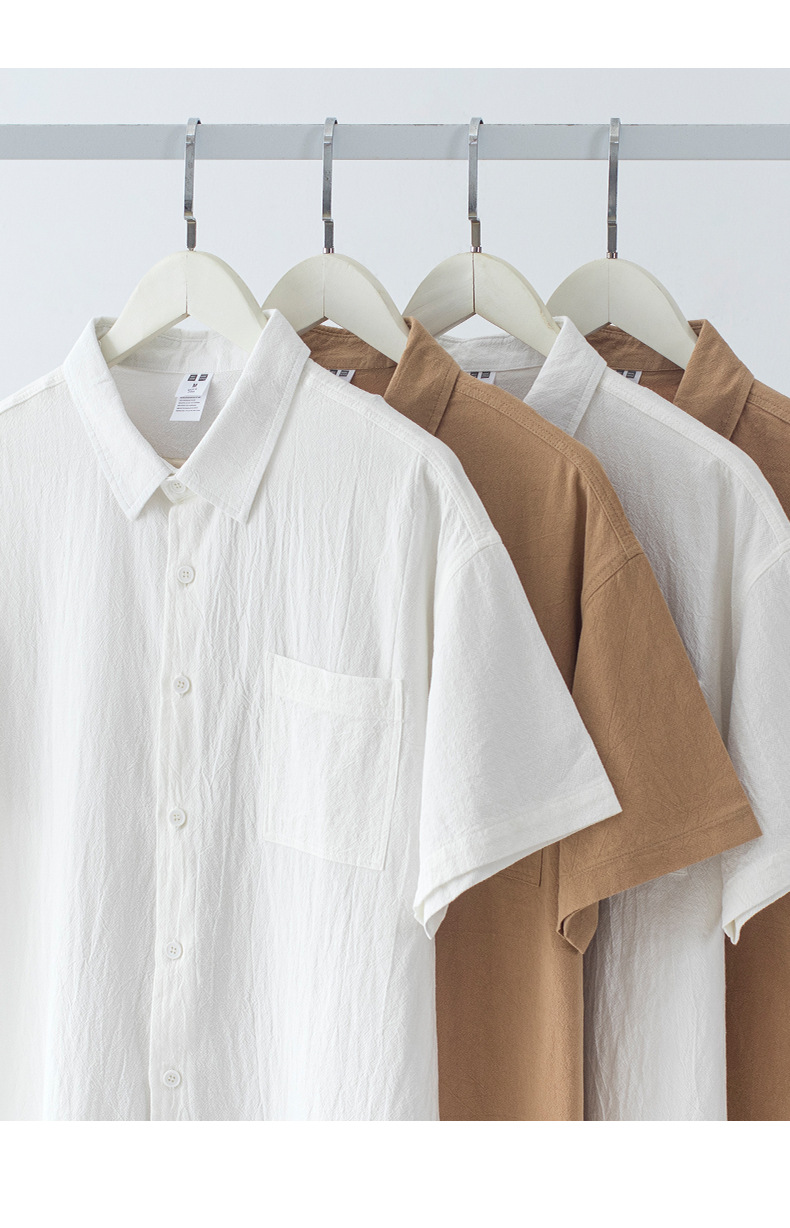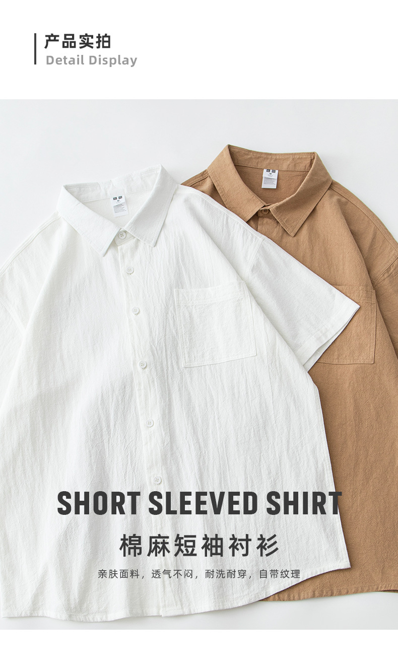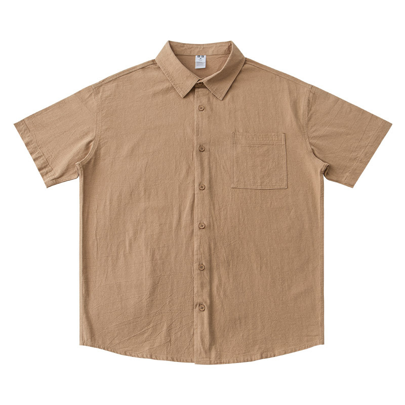 • 면과 린넨 반팔 셔츠 - 카멜