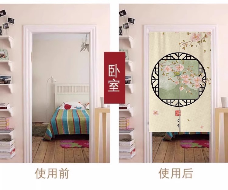 중국식 도어 커튼, 룸 디바이더 커튼, 홈 엔트리 침실 하프 커튼, 거실, 화장실, 욕실, 펀치 프리 커튼스토어 가기