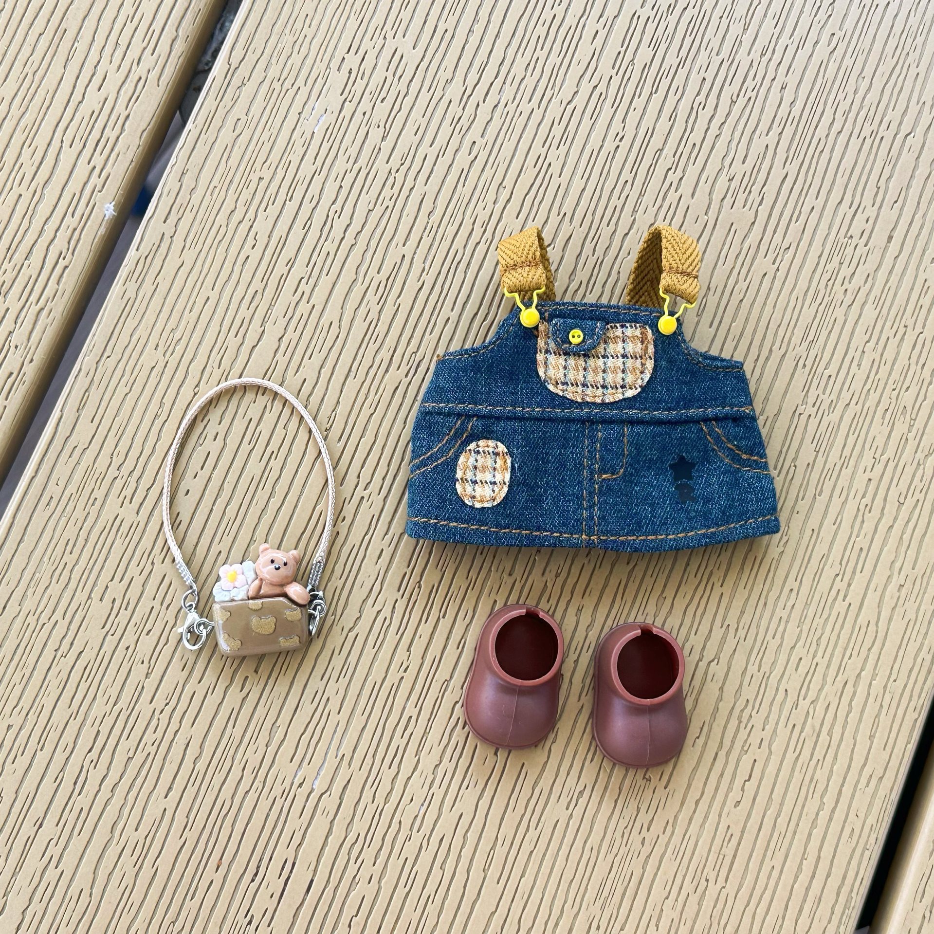 17cm 라부부 베이비 드레스 데님 서스펜더 스커트 블라인드 박스 펜던트 라부부 밀짚 모자 스커트 교체 의류 트렌드스토어 가기