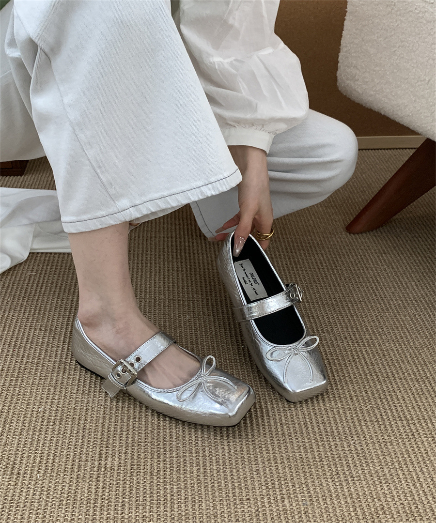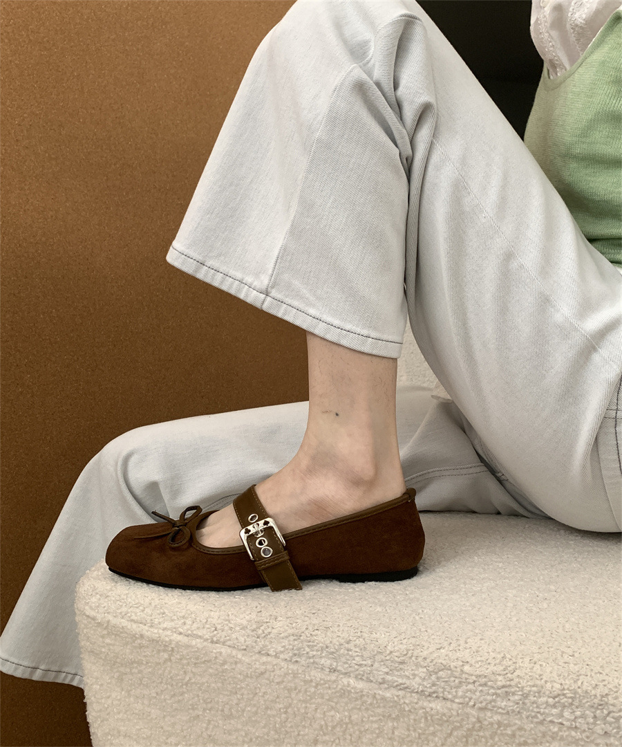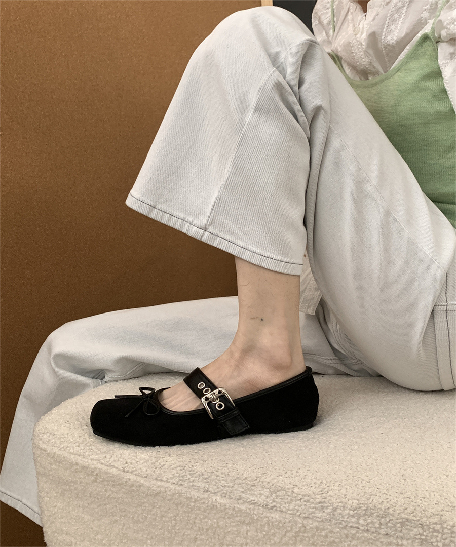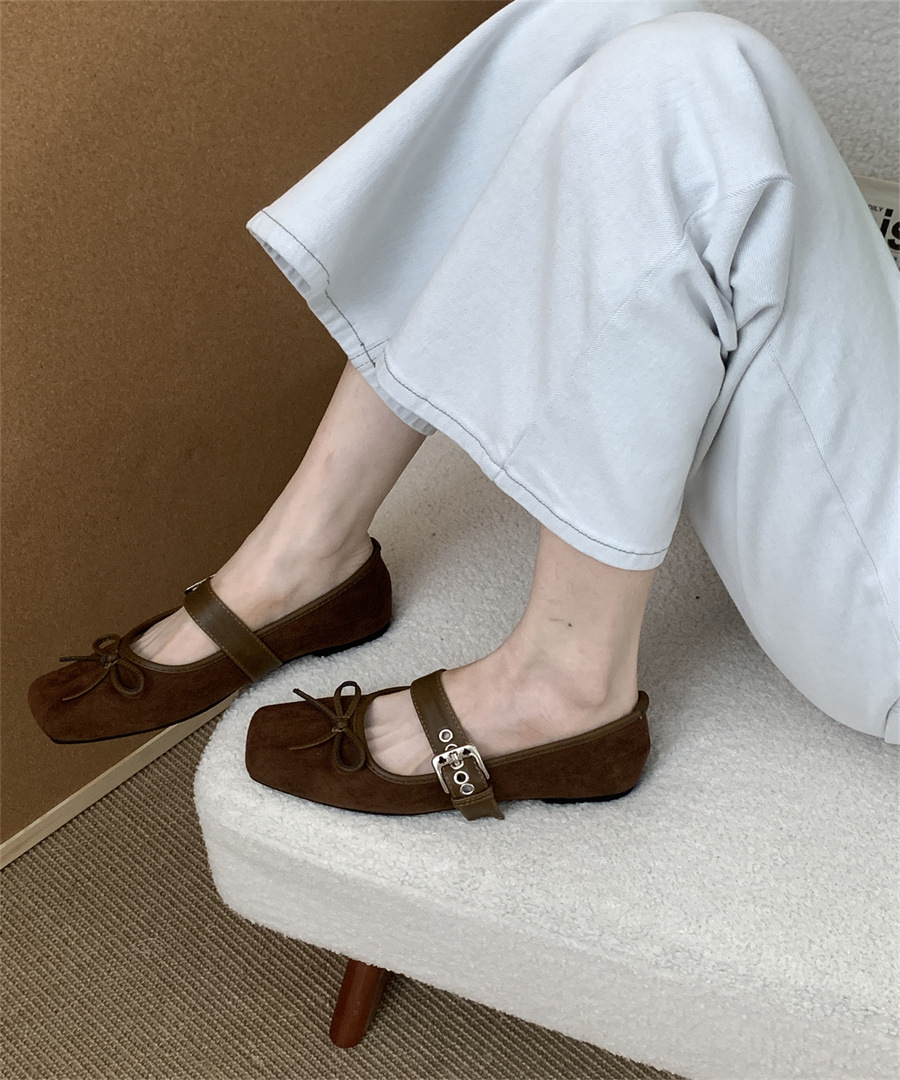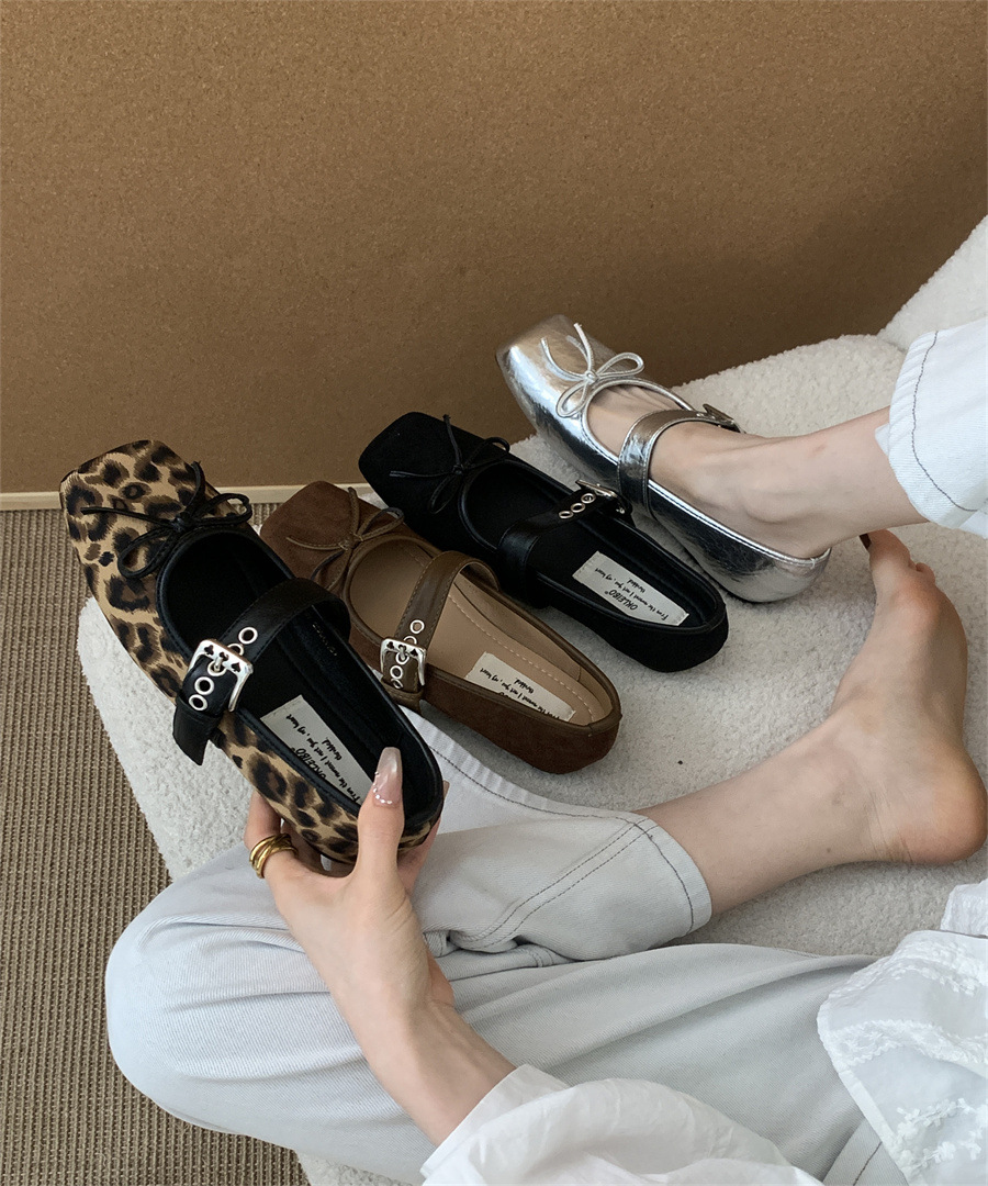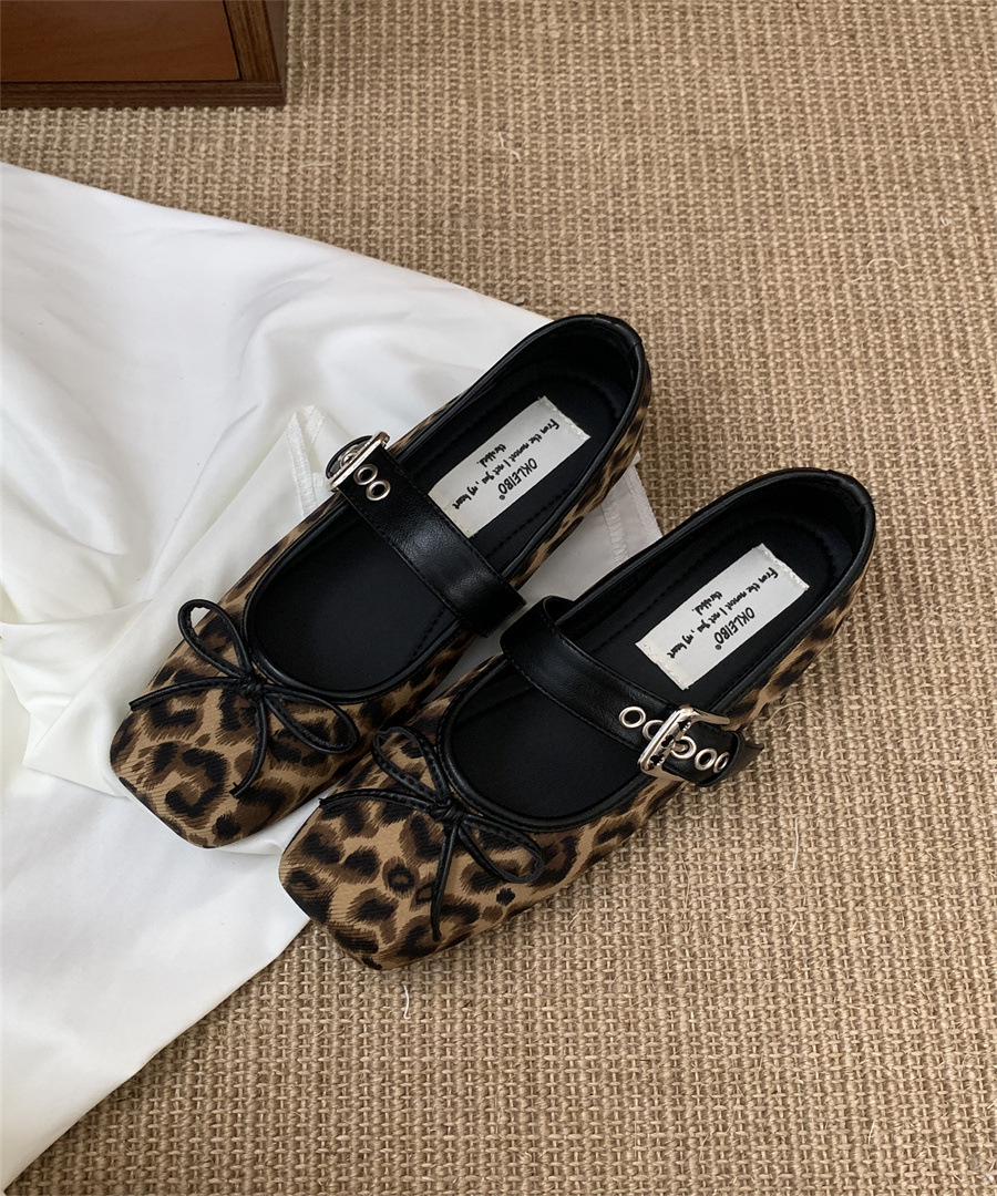인터넷 연예인 신상 벨트 버클 프렌치 레오파드 프린트 슈즈 2025 메리 스퀘어 토 보우 소프트 솔 미끄럼 방지 여성용 비니 슈즈